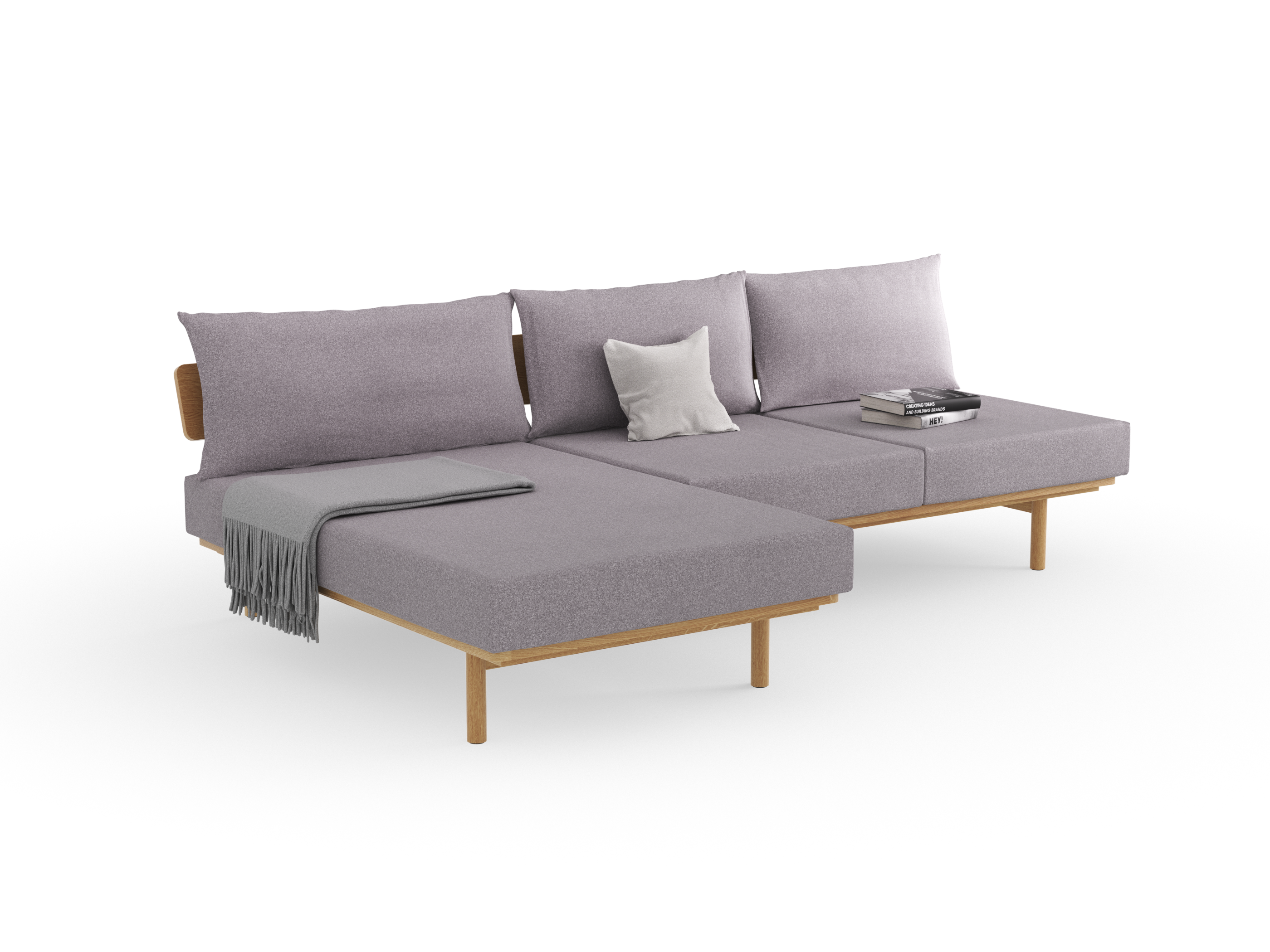 Loungesofa Lana, 260 x 160 cm mit Liegeteil links/rechts, Wollstoff Stavang Stein (61), Eiche