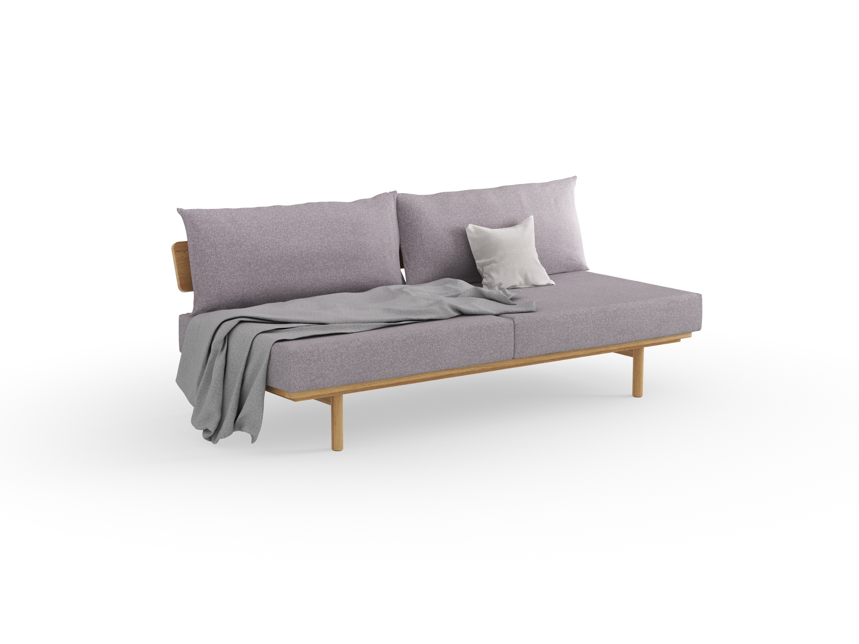Legeres Sitzen, Liegen, LoungenDas Leitmotiv für Lana war "Reduktion auf das Wesentliche": puristische Formgebung, einfache Konstruktion und optimierter Materialeinsatz, um kostengünstiger fertigen und Ihnen einen attraktiven Preis im Einstiegsbereich bieten zu können.Gleichzeitig erfüllt das Sofa höchste Ansprüche an Qualität und ökologische Nachhaltigkeit: metallfreier Unterbau aus Massivholz, handgefertigte Polsterung, NATURTEXTIL BEST-zertifizierte, abnehmbare Bezüge aus 100 % Naturfasern.Die kleineren Lana-Modelle finden auch auf beschränktem Wohnraum, im urbanen Bereich und in Single- oder Zwei-Personen-Haushalten Platz.In der Variante "Loungesofa" erweist sich Lana als sehr flexibel: Dessen Liegeteil kann nach Belieben rechts oder links an das Sofa angedockt werden, binnen Minuten "die Seite wechseln", und auch solitär eingesetzt werden - als Tagesliege.Bereits der Anblick des von der Polsterung dominierten Sofas suggeriert informelle Bequemlichkeit. Die Grundidee – ungezwungenes Sitzen, Liegen, Loungen – kommt auch in der großzügigen Sitztiefe von 65 cm und in der Polsterstärke von 14 cm zum Ausdruck. Die schlanken Füße und die Schattenfuge zwischen dem abgestuften Unterbau und der Sitzpolsterung lassen die Polsterung etwas abgehoben erscheinen und betonen die legere Anmutung von Lana.Der formal schlichte, stabile Unterbau aus fix verleimtem Massivholz trägt einen Lattenrost mit elastischen Federleisten. Auf diesem ruht lose die Sitzpolsterung. Die Rückenpolster lehnen an einem breiten Massivholzsteg, der dem Sofa eine schöne Rückenansicht verleiht.Polsterung und abnehmbare BezügeDie in unserer Textilwerkstätte gefertigte, sandwichartig aufgebaute Polsterung besteht aus fest-elastischem Kokoslatex, weichem Naturlatex und Schafschurwollvlies. Sie ist mit einer "Weißpolsterung" aus Baumwollstoff fix bezogen. Darüber kommt der abnehmbare Sofabezug. Für diesen können Sie aus einer Vielzahl von NATURTEXTIL BEST-zertifizierten Naturgeweben auswählen.Separat bestellbar: lose Armlehne, B 26 x T 51 x H 16 cm, auch als Kopfkissen verwendbar. -