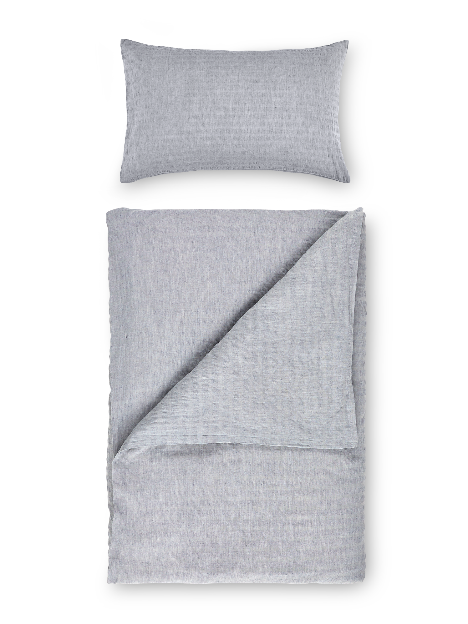 Deckenüberzug ORLANDO, blaugrau, 140 x 200 cm, 60 % Leinen/40 % Baumwolle, Seersucker, GOTS
