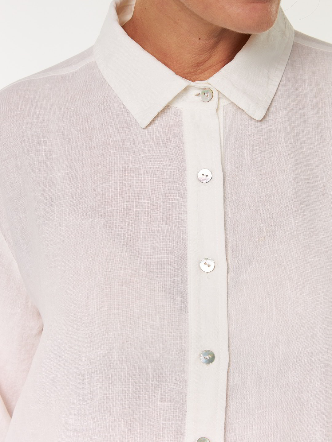Feine Leichtigkeit, natürlicher GlanzDie Hemdbluse aus reinem Leinen überzeugt durch ihre zarte Haptik und den charakteristischen, natürlichen Fall. Der klassische Schnitt mit Kragen, durchgehender Knopfleiste und eingesetzten Ärmeln verleiht dem Modell eine zeitlose Silhouette. Halbarm und edle Perlmuttknöpfe unterstreichen den sommerlichen Charakter – ein luftig-leichtes Essential mit natürlicher Eleganz.Schnitt: leger. In Größe 36 ca. 58 cm lang. Unsere Models sind zwischen 175 cm und 177 cm groß und tragen Kleidergröße S.Ökologisch & fair produziertEin schönes Stück Natur, welches wir nur zu gern tragen. Dieses Kleidungsstück entsteht aus edlem Leinen kbA und wird nach strengen Richtlinien – wie dem Global Organic Textile Standard – bei unserem Partnerbetrieb gefertigt.Material: 100 % Leinen.Materialherkunft: Leinen kbA aus Frankreich. Gewebt in Italien. Gefertigt in Portugal nach dem GOTS. -