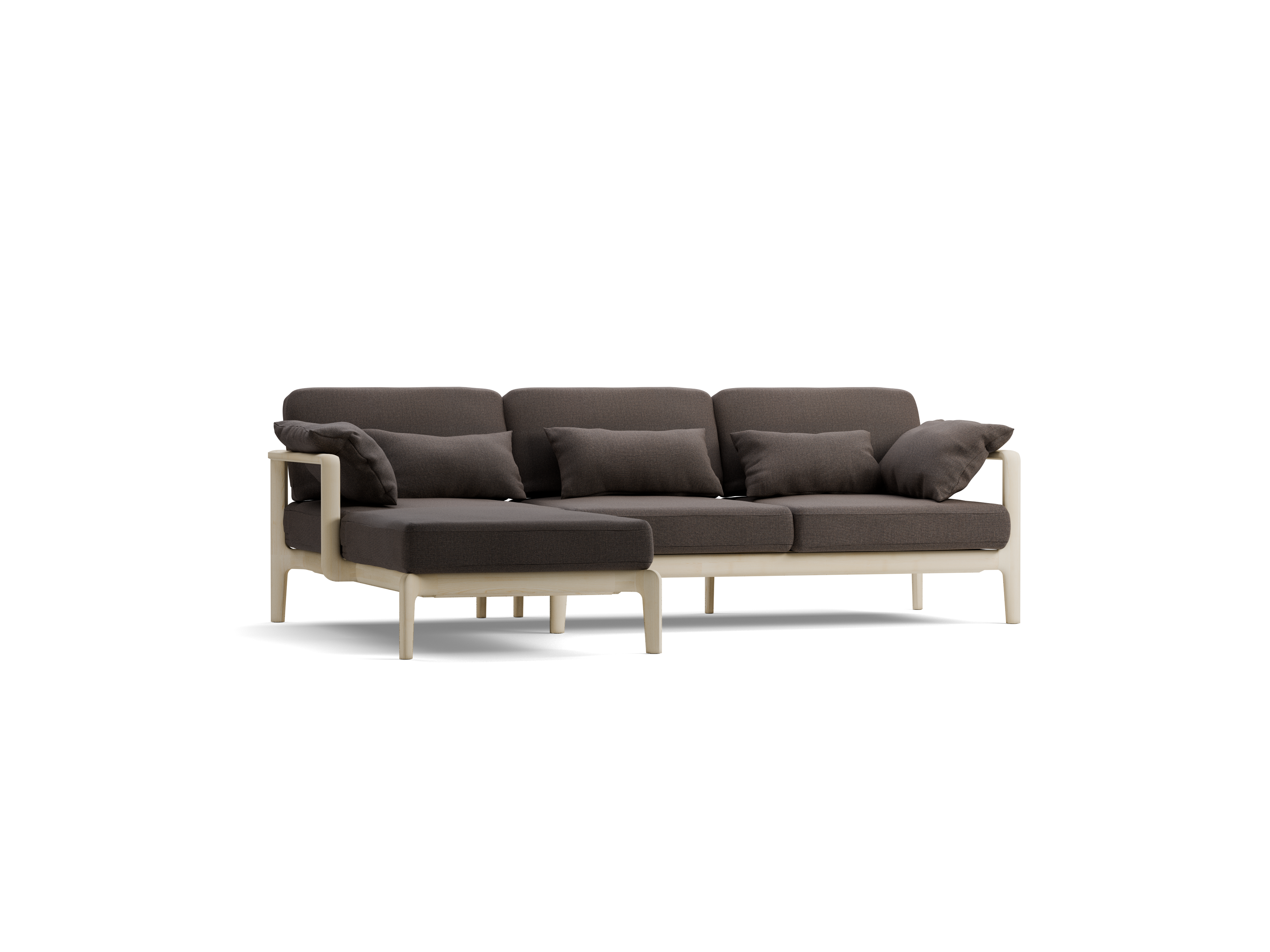 Loungesofa Linera, schmal mit Liegeteil links, Wollstoff Elverum Nougat (124), Esche