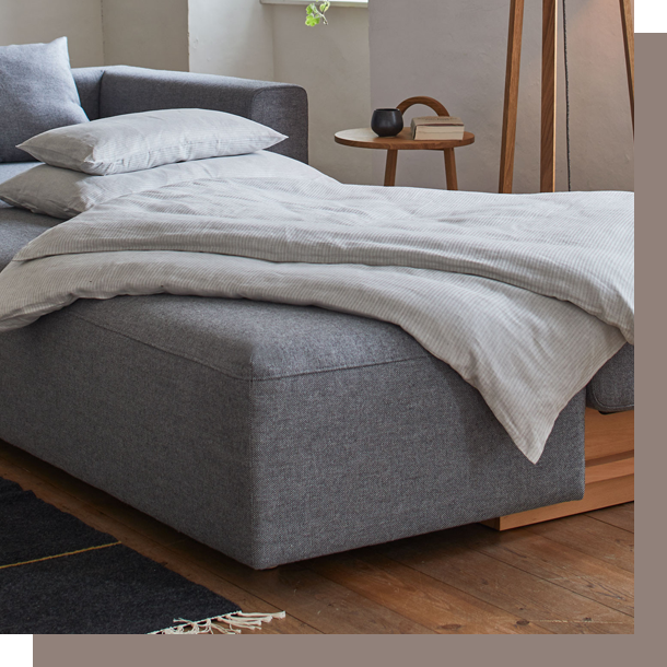 Unsere Polstermöbel bestehen durch und durch aus Naturmaterialien: vom soliden Korpus aus Massivholz über die komfortable Polsterung aus Schurwolle, Kokosfasern und Naturlatex bis zum hautfreundlichen Bezug aus Schurwollgewebe. Sie bringen nicht nur die Natur ins Zuhause, sondern auch das Gefühl von Ankommen, Entspannen sowie sich Fallenlassen. -