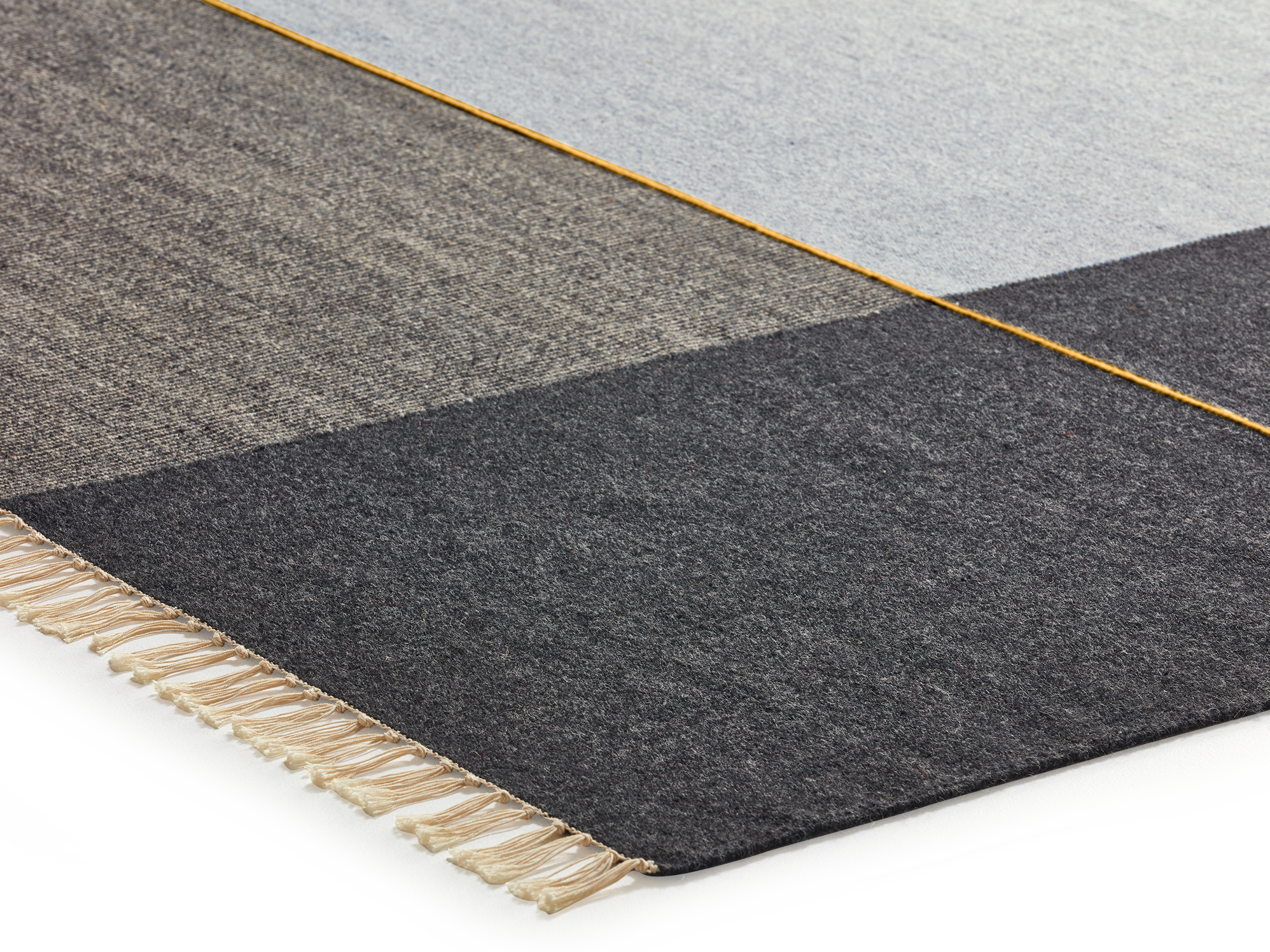 Markenzeichen des Kelims ist der Sumak: ein schmaler, leicht erhöhter Streifen aus Schussfäden in Kontrastfarben. Wir sind keine Freunde inflationär verwendeter Superlative, aber: Im Hinblick auf Design, biologisch zertifizierte Naturfasern, Ökologie, Handwerkstechnik und Fertigung in Mitteleuropa ist der Kelim Mata tatsächlich einzigartig.Hinweis: Eine maximale Größenabweichung von +/- 3 % ist bedingt durch die Handarbeit möglich. Maße exkl. Fransen.Bei diesem Teppich sind keine Maßanfertigungen möglich. -