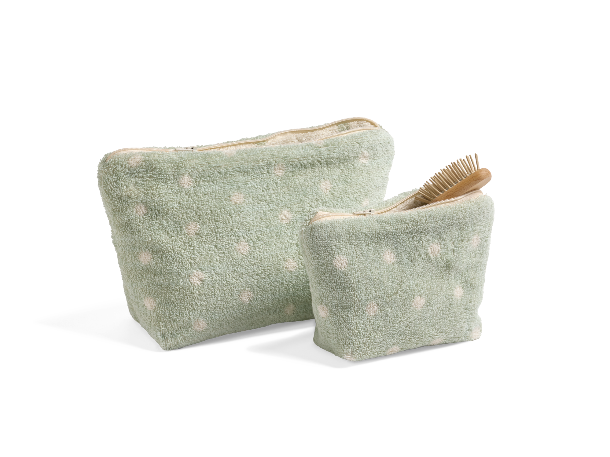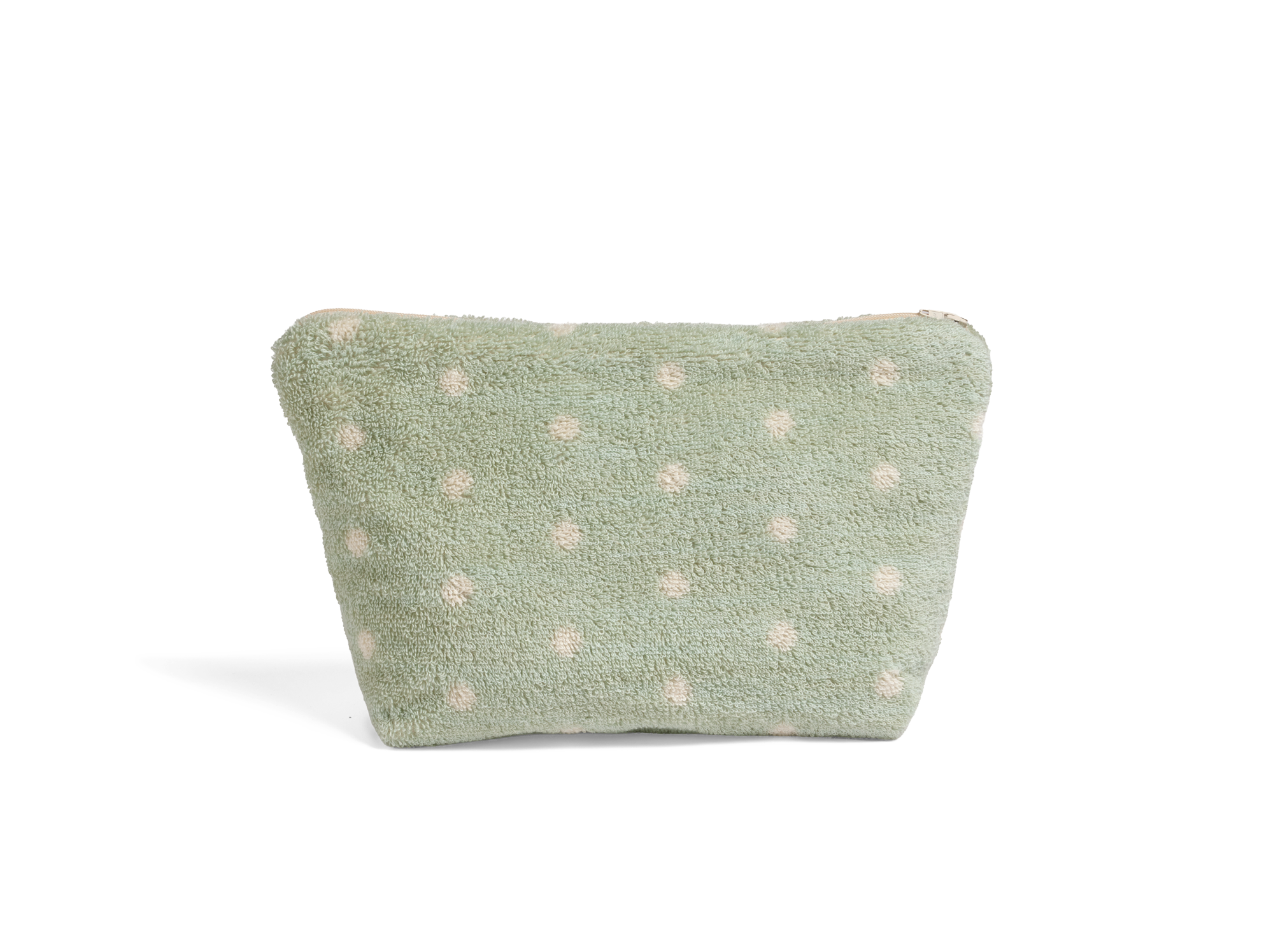Aufbewahrungstasche Pünktchen maxi, mattgrün, 28 x 9 x 17 cm, 100 % Baumwolle, GOTS
