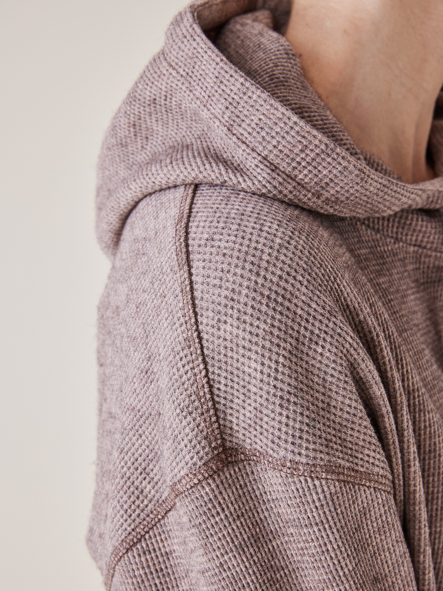 Das Modell in der weichen Waffelpiqué-Qualität überzeugt mit langen Ärmeln, einer Kapuze mit integriertem Zugband, markanten Teilungsnähten und einem abgerundeten Saum.