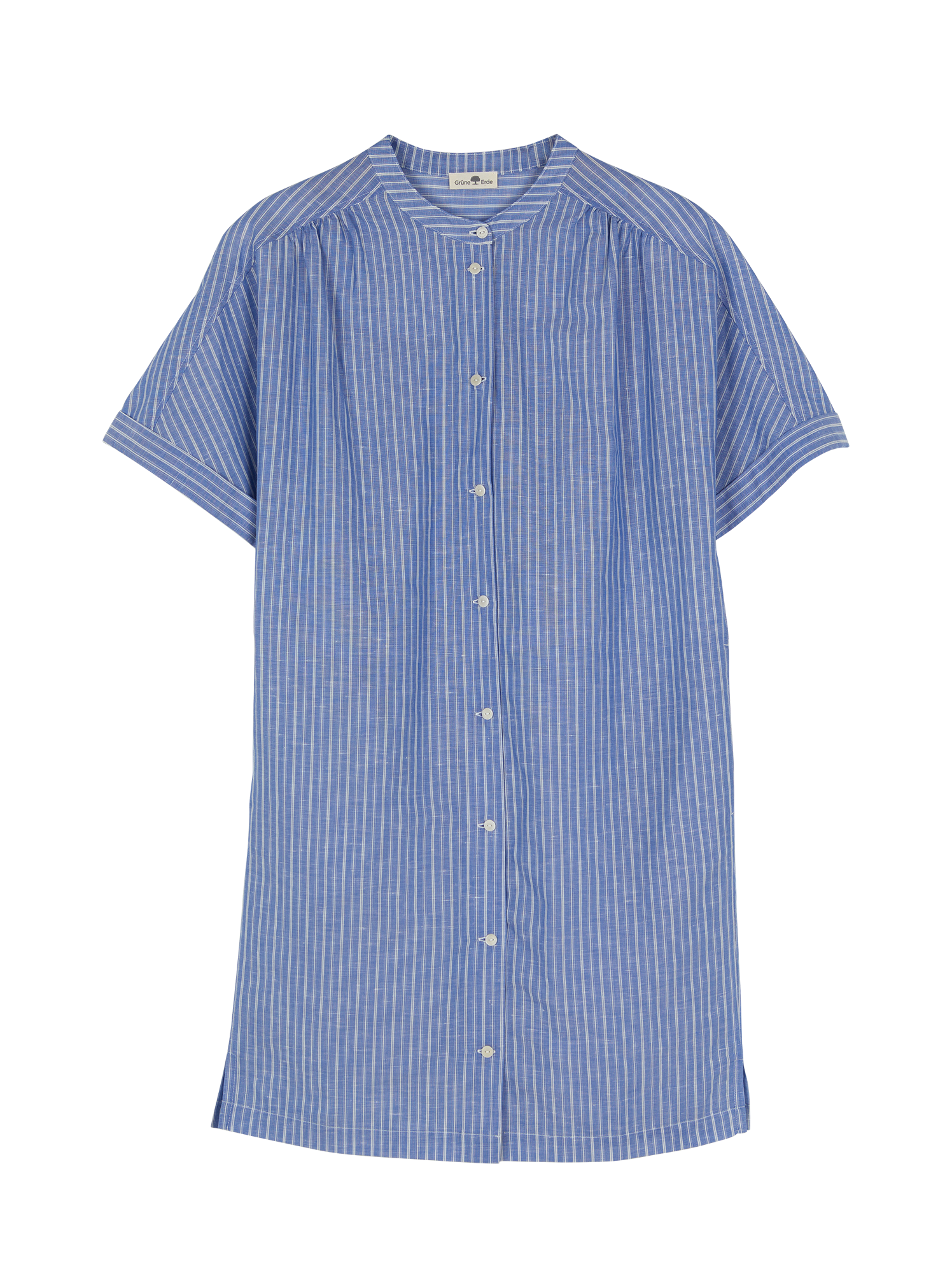 Kleid aus besonders weicher Baumwolle und edlem Leinen – leicht, atmungsaktiv und angenehm auf der Haut. Der sehr halsnahe Rundhalsausschnitt und die durchgehende Knopfleiste verleihen dem Modell klare Linien, während das Raff-Detail an der vorderen Schulterpasse und die Rückseite mit Passe und Raffung feine Akzente setzen. Seitenschlitze am Saum sorgen für Bewegungsfreiheit, Umschläge an den Ärmeln unterstreichen den legeren Look. Weitere Details: mit Bindeband für die Taille.