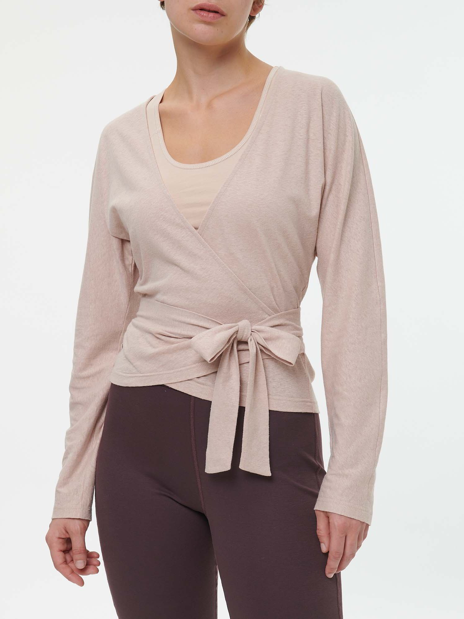 • Langarm-Wickelshirt aus Bio Baumwolle/Hanf, camelie