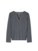Leicht-tailliertes Langarm-Shirt in wertiger Qualität: wertvolles Leinen kbA in Kombination mit weicher Baumwolle kbA. Eine feine Ringel-Dessinierung wird mit kleinen Details abgerundet – wie V- Schlitzblende im Vorderteil, kontrastfarbige Flatlocknähte sowie an den Seiten- und inneren Ärmelnähten.