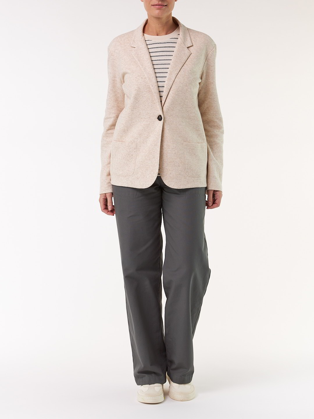 Lässiger Blazer aus weicher Baumwolle und hochwertigem Hanf kbA – perfekt für jeden Tag. Das Modell besticht durch seine natürliche Struktur und den entspannten Sitz. Die typische Blazerform mit Reverskragen, einem Knopf zum Schließen und zwei aufgesetzten Taschen verleiht dem Design eine moderne, sportlich-elegante Note. Eine Mittelnaht im Rücken rundet den Look harmonisch ab und sorgt für eine schöne Passform.