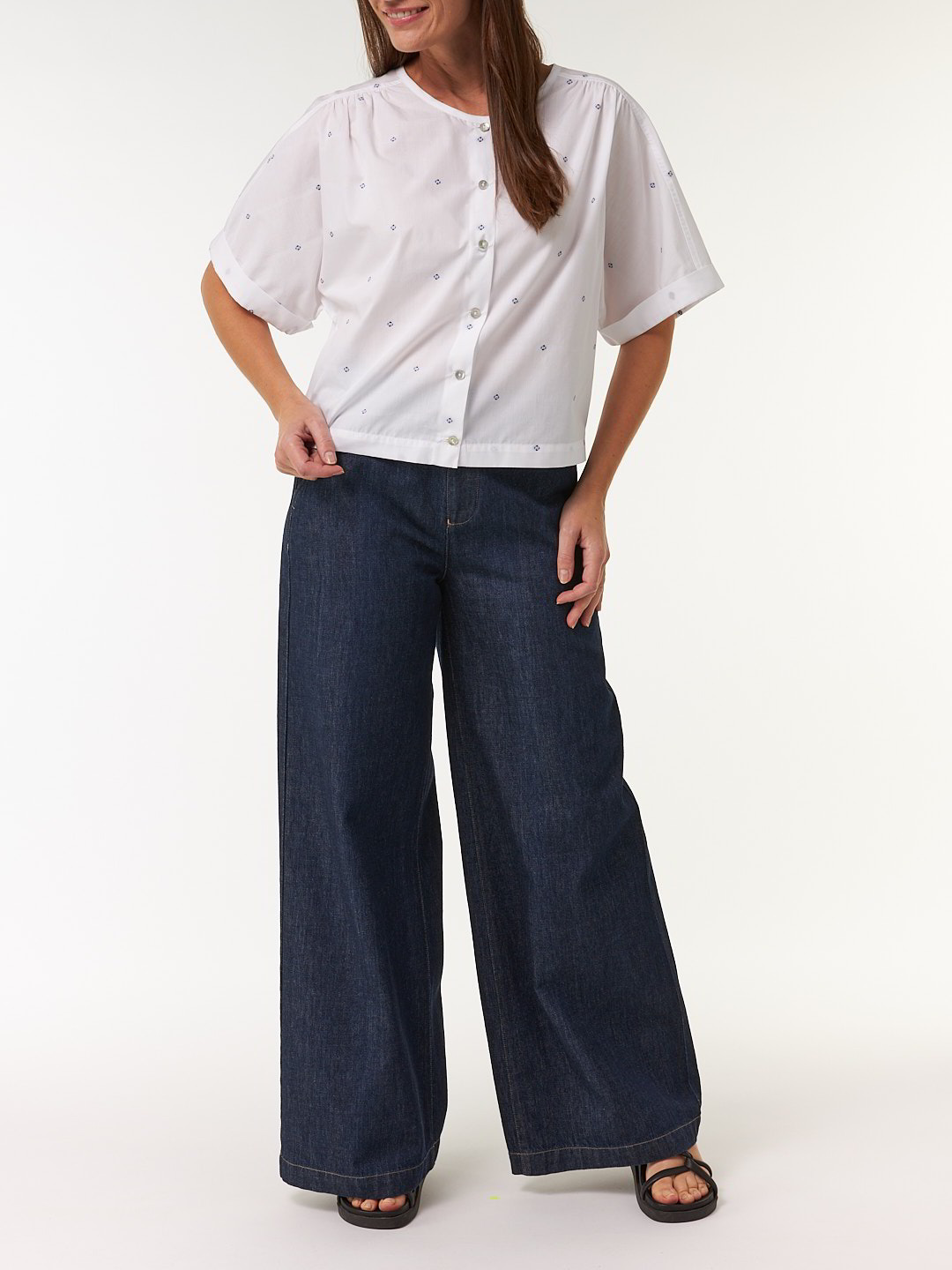 Feine Webstruktur, entspannte SilhouetteKimono-Bluse aus besonders weicher Baumwolle mit feinem Webeffekt – leicht und angenehm auf der Haut. Die legere Kimonoform und die kurze Schnittführung sorgen für eine entspannte Silhouette. Eine Schulterpasse mit Raffung auf der Rückseite, der eingearbeitete Gummizug am Saum sowie der elegante Umschlag an den Ärmelabschlüssen verleihen dem Modell eine stilvolle Note. Eine schmale Kragenblende und eine durchgehende Knopfleiste mit edlen Perlmuttknöpfen vollenden den Look mit subtiler Raffinesse – ein feminines Essential mit entspannter Eleganz.Schnitt: sehr legere Kimonoform. In Größe 36 ca. 53 cm lang. Unsere Models sind zwischen 175 cm und 177 cm groß und tragen Kleidergröße S.Ökologisch & fair produziertEin schönes Stück Natur, welches wir nur zu gern tragen. Dieses Kleidungsstück entsteht aus edlem Leinen kbA und wird nach strengen Richtlinien – wie dem Global Organic Textile Standard – bei unserem Partnerbetrieb gefertigt.Material: 100 % Baumwolle.Materialherkunft: Baumwolle kbA aus der Türkei und Indien. Gewebt in der Europäischen Union. Gefertigt in Portugal nach dem GOTS. -