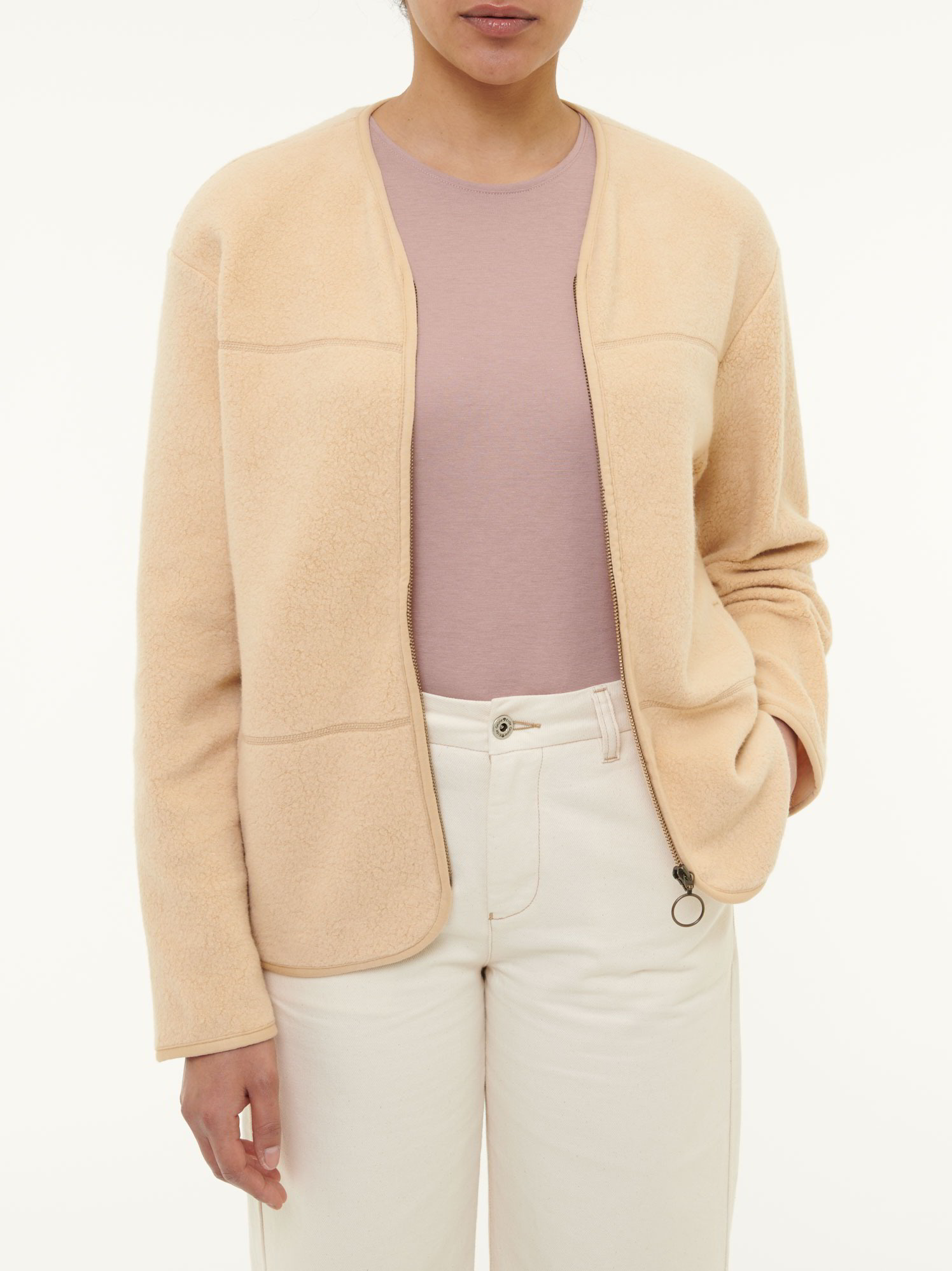 Hautschmeichelnd, pur und wunderbar wärmendAls besonderes Lieblingsstück gilt unsere zeitloser Jacke in flauschiger, softer Teddy-Plüsch-Qualität. Das kuschelige Material aus wertvoller Baumwolle kbA spendet ein wohliges Gefühl – über Saisonen hinweg! Abgerundet wird das puristische Modell mit der lockeren Passform mit einem Reißverschluss mit und Ring-Puller, Leistentaschen und rundum eingefassten Kanten. Weitere Details: horizontale Flatlocknähte in Vorder und Rückenteil, sowie am Hinterärmel.Schnitt: leger. In Größe S (36/38) ca.63 cm lang. Unsere Models sind zwischen 175 cm und 177 cm groß und tragen Kleidergröße S.Ökologisch & fair produziertEin schönes Stück Natur, welches wir nur zu gern tragen. Dieses Kleidungsstück entsteht aus Baumwolle kbA und wird nach strengen Richtlinien – wie dem Global Organic Textile Standard – bei unserem Partnerbetrieb gefertigt.Material: 100 % Baumwolle.Materialherkunft: Baumwolle kbA aus Griechenland. Gewirkt in Griechenland. Gefertigt in Bulgarien nach dem GOTS. -