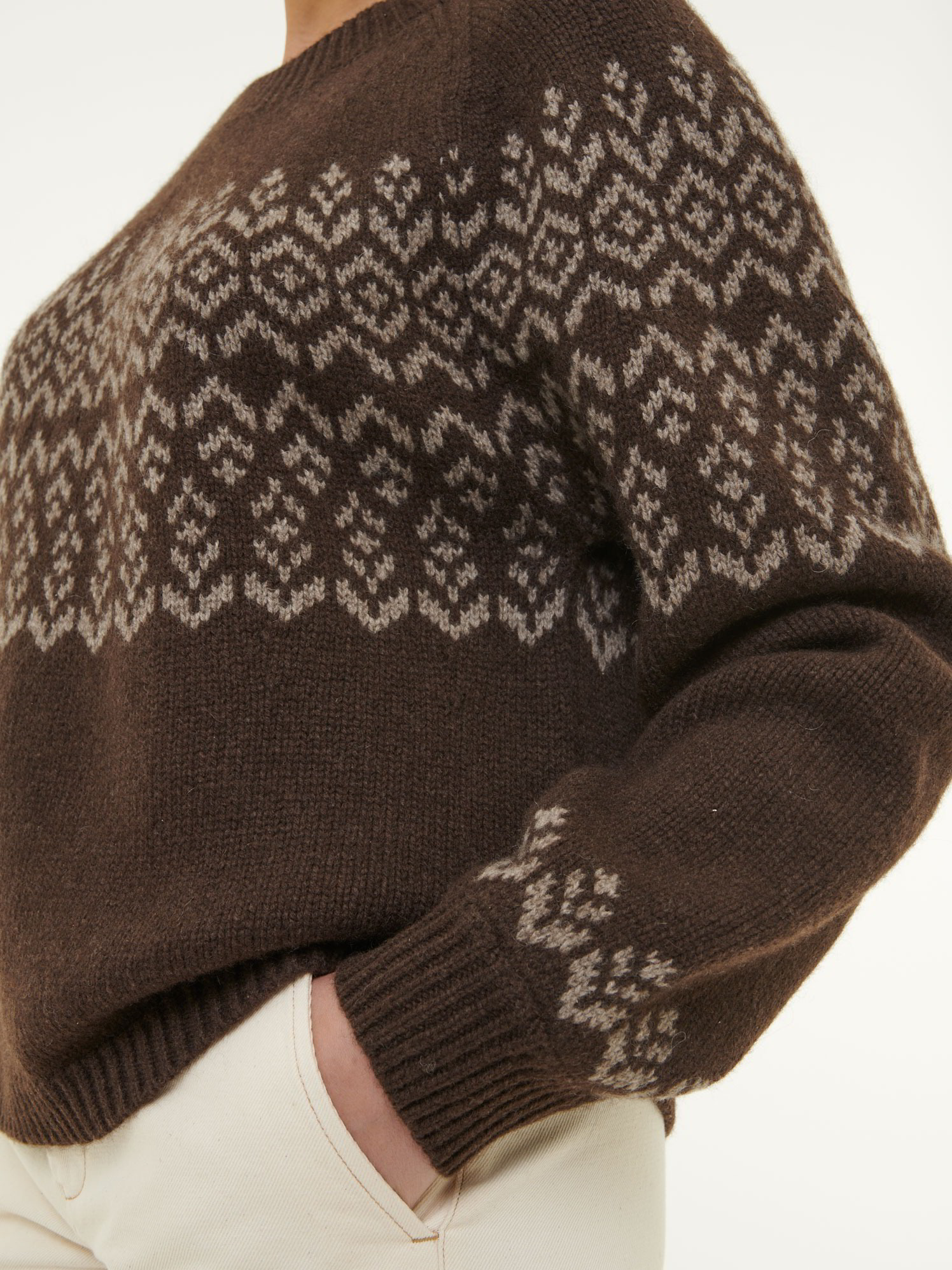 Naturbelassen, nordisch inspiriert, unaufdringlichDer Pullover aus reiner, ungefärbter Yakwolle verbindet zurückhaltendes Design mit spürbarer Qualität. Das wertvolle Naturmaterial liegt weich auf der Haut, hält angenehm warm und bleibt dabei atmungsaktiv. Die feine Norweger-Passe setzt einen dezenten, nordisch inspirierten Akzent, ohne aufdringlich zu wirken – stilvoll, aber reduziert. Leger geschnitten mit Strickbündchen an allen Abschlüssen.Schnitt: leger. In Größe S (36/38) ca. 59 cm lang. Unsere Models sind zwischen 175 cm und 177 cm groß und tragen Kleidergröße S.Ökologisch & fair produziertEin schönes Stück Natur, welches wir nur zu gern tragen. Dieses Kleidungsstück entsteht aus kostbarer Yakwolle und wird in größter ökologischer Sorgfalt bei unserem Partnerbetrieb gefertigt. Die gesamte Wertschöpfung bleibt im Land der Rohfaser – fair gegenüber Mensch, Tier und Natur. Um die Langlebigkeit des Naturproduktes zu erhalten, empfehlen wir einen sorgsamen und wertschätzenden Umgang im alltäglichen Gebrauch.Material: 100 % Yakwolle.Materialherkunft: Yakwolle aus der Mongolei. Gestrickt in der Mongolei. Gefertigt in der Mongolei. -