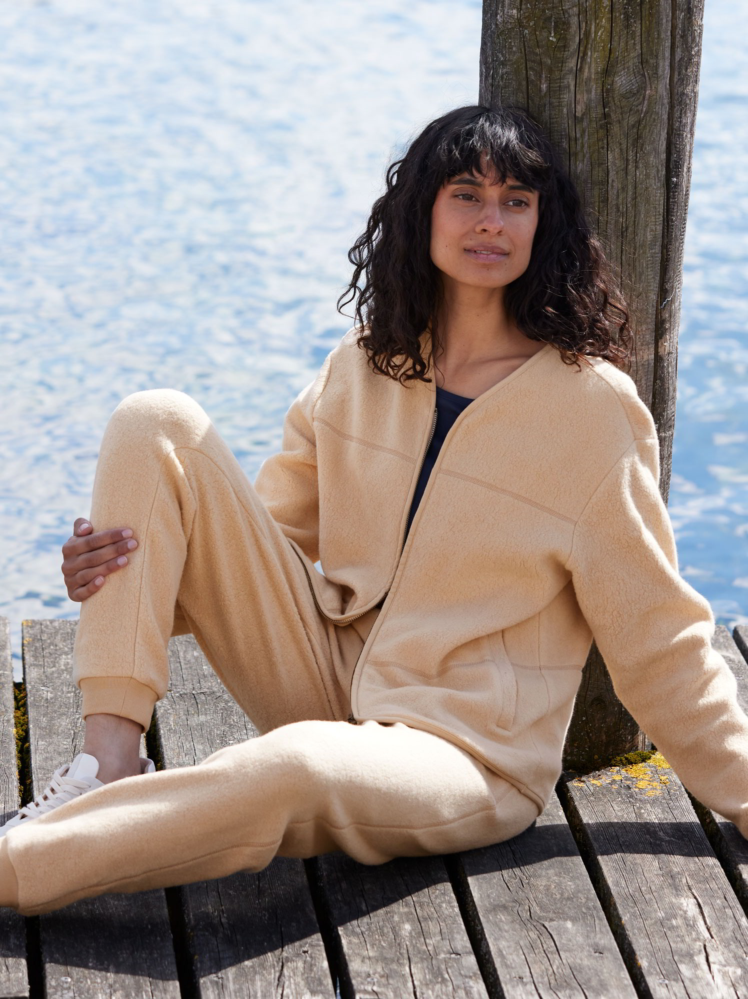 Hautschmeichelnd, pur und wunderbar wärmendAls besonderes Lieblingsstück gilt unsere zeitlose Pants in flauschiger, softer Teddy-Plüsch-Qualität. Das kuschelige Material aus wertvoller Baumwolle kbA spendet ein wohliges Gefühl – über Saisonen hinweg! Abgerundet wird das puristische Modell mit der lockeren Passform mit einem komfortablen Gummizug am Bund, einem Sattel im Rückenteil und seitlichen Eingriffstaschen in der Vorderhose sowie Rippbündchen am Saum. Der leicht vertiefte Schritt sorgt für eine bequeme Passform.Schnitt: leger/klassik/lang. Innenbeinlänge in Größe S (36/38) ca. 75 cm. Unsere Models sind zwischen 175 cm und 177 cm groß und tragen Kleidergröße S.Ökologisch & fair produziertEin schönes Stück Natur, welches wir nur zu gern tragen. Dieses Kleidungsstück entsteht aus Baumwolle kbA und wird nach strengen Richtlinien – wie dem Global Organic Textile Standard – bei unserem Partnerbetrieb gefertigt.Material: 100 % Baumwolle.Materialherkunft: Baumwolle kbA aus Griechenland. Gewirkt in Griechenland. Gefertigt in Bulgarien nach dem GOTS. -