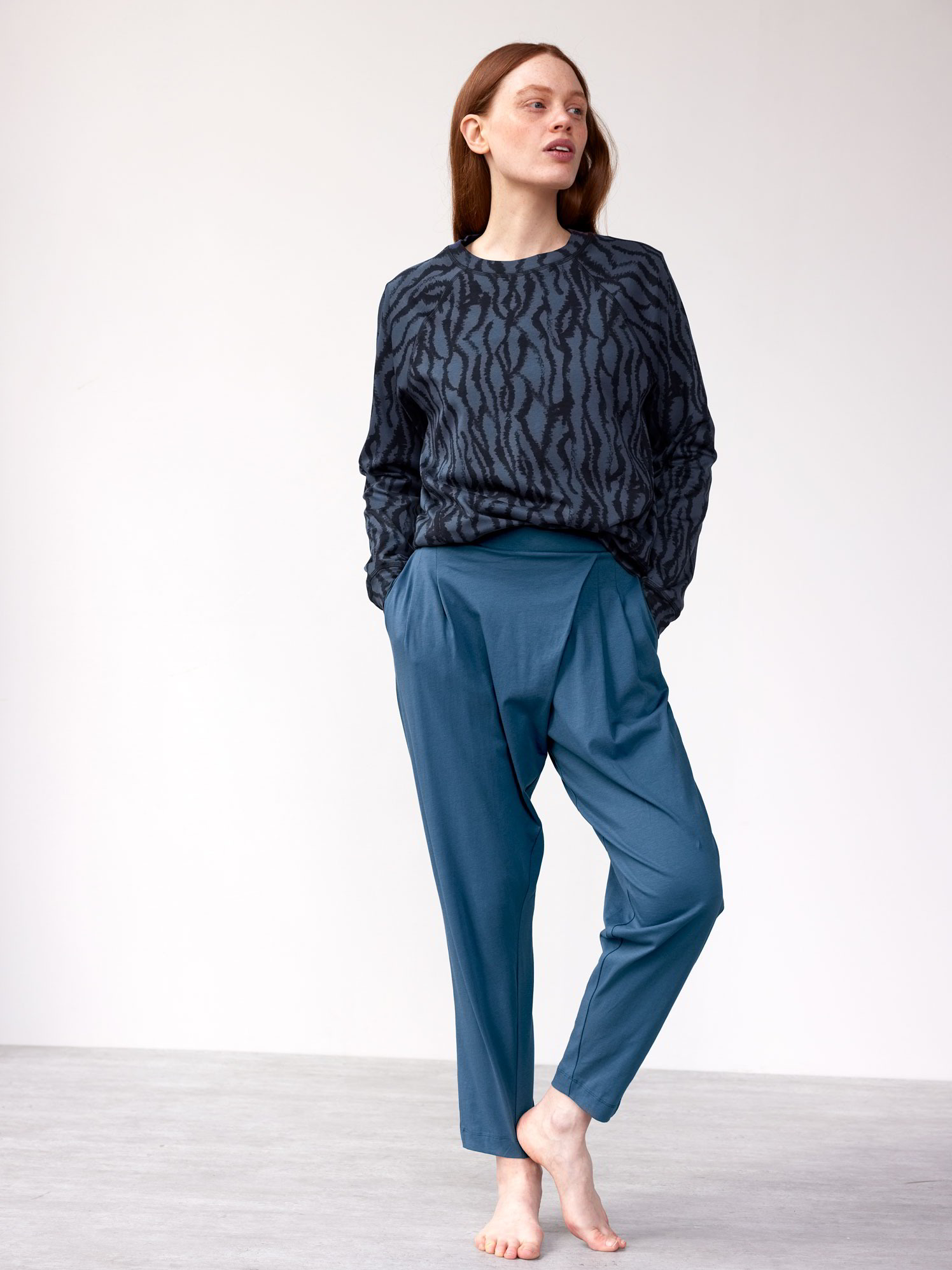 Schnitt: weit/basic/lang. Innenbeinlänge in Größe 36 ca. 75 cm. Unsere Models sind zwischen 175 cm und 177 cm groß und tragen Kleidergröße 36.