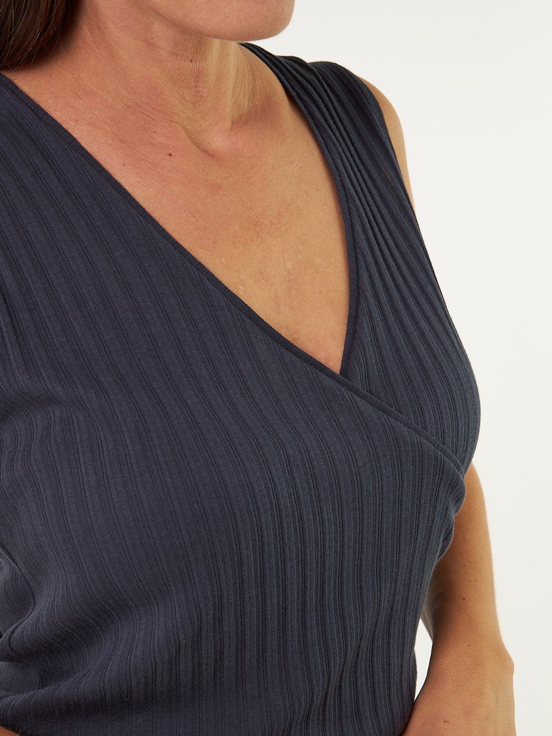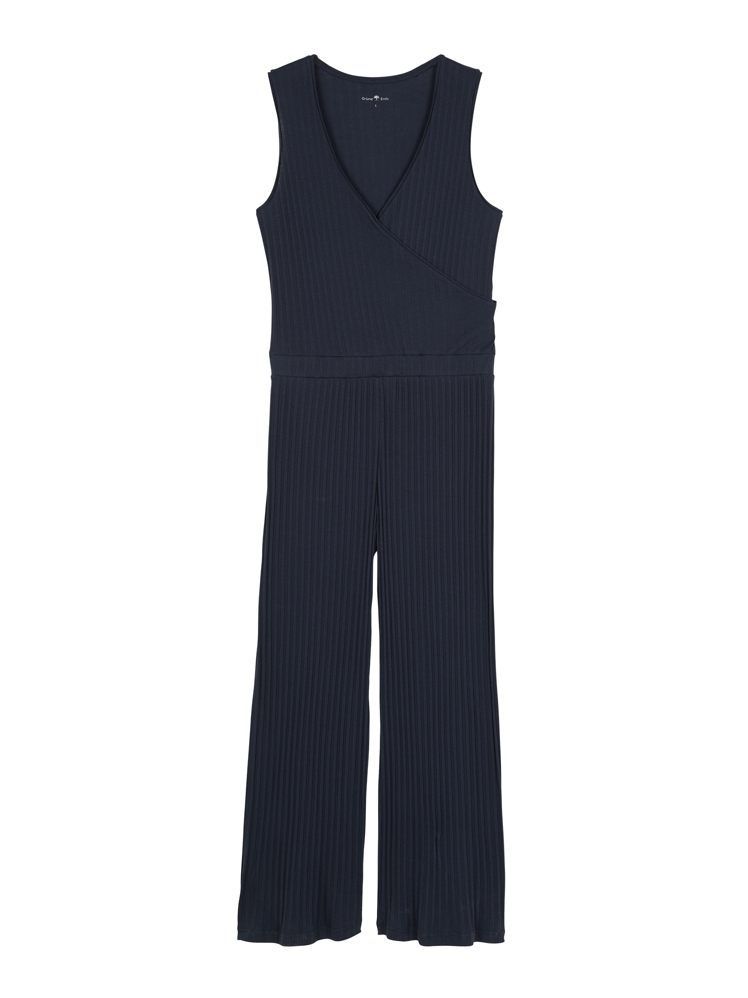 Fließender Overall aus hautfreundlicher Baumwolle kbA in markanter Breitripp-Struktur. Das ärmellose Modell zeigt sich mit femininer Wickeloptik im Oberteil und einem breiten Gummibund in der Taille, der die Silhouette sanft betont. Das lange, weit geschnittene Bein unterstreicht den modernen, eleganten Fall. Ein vielseitiger Look mit natürlicher Struktur – pur, bequem und zeitlos schön.