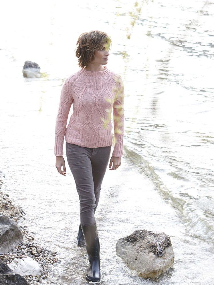 Schmeichelnde Winterpastells in kreidigen Tönen finden bei diesem hochwertigen Pullover schnell ihre Liebhaber. Das leger-entspannt sitzende Modell mit sportiven Raglanärmeln wird zum dekorativen Blickfänger durch das aufwändige Zopfmuster. Am Stehkragen, den Abschlüssen der langen Ärmel und am Saum mit formtreuem Rippenstrick gearbeitet. Der Pullover ist ganz aus streichelweicher, flauschiger Alpakawolle gefertigt, die hervorragend wärmt und für ein angenehm-wohliges Körpergefühl sorgt. In Größe S (36/38) ca. 59 cm lang.