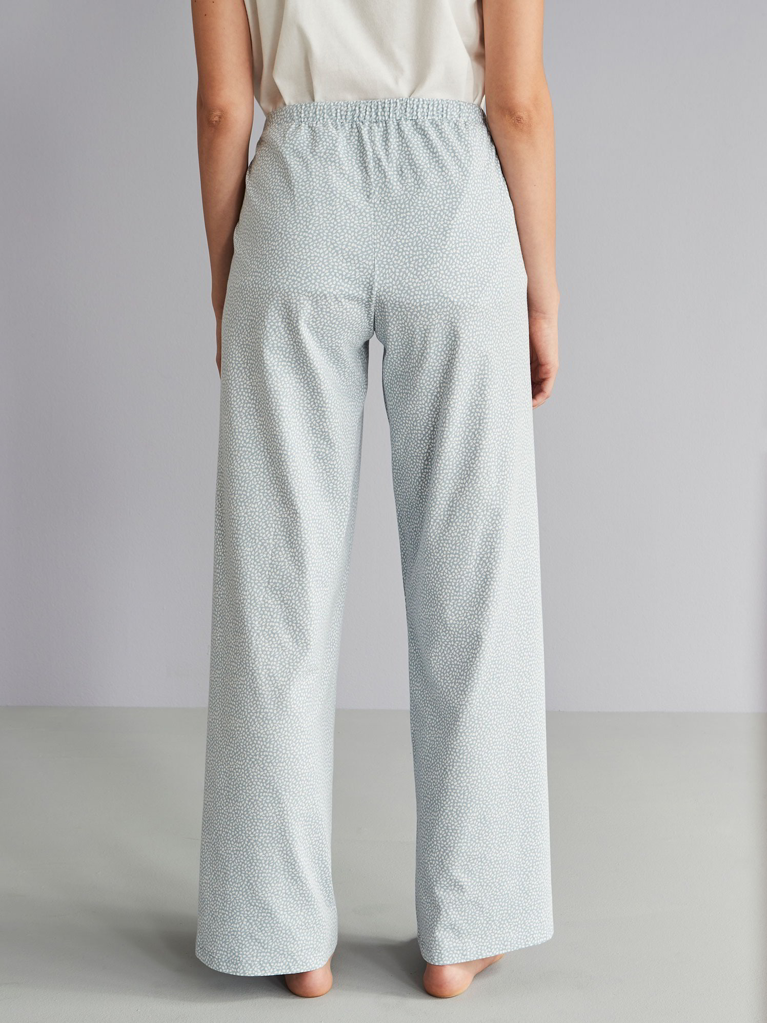 Schlafhose-Lang, 74 Blätterdruck blau, M, GOTS