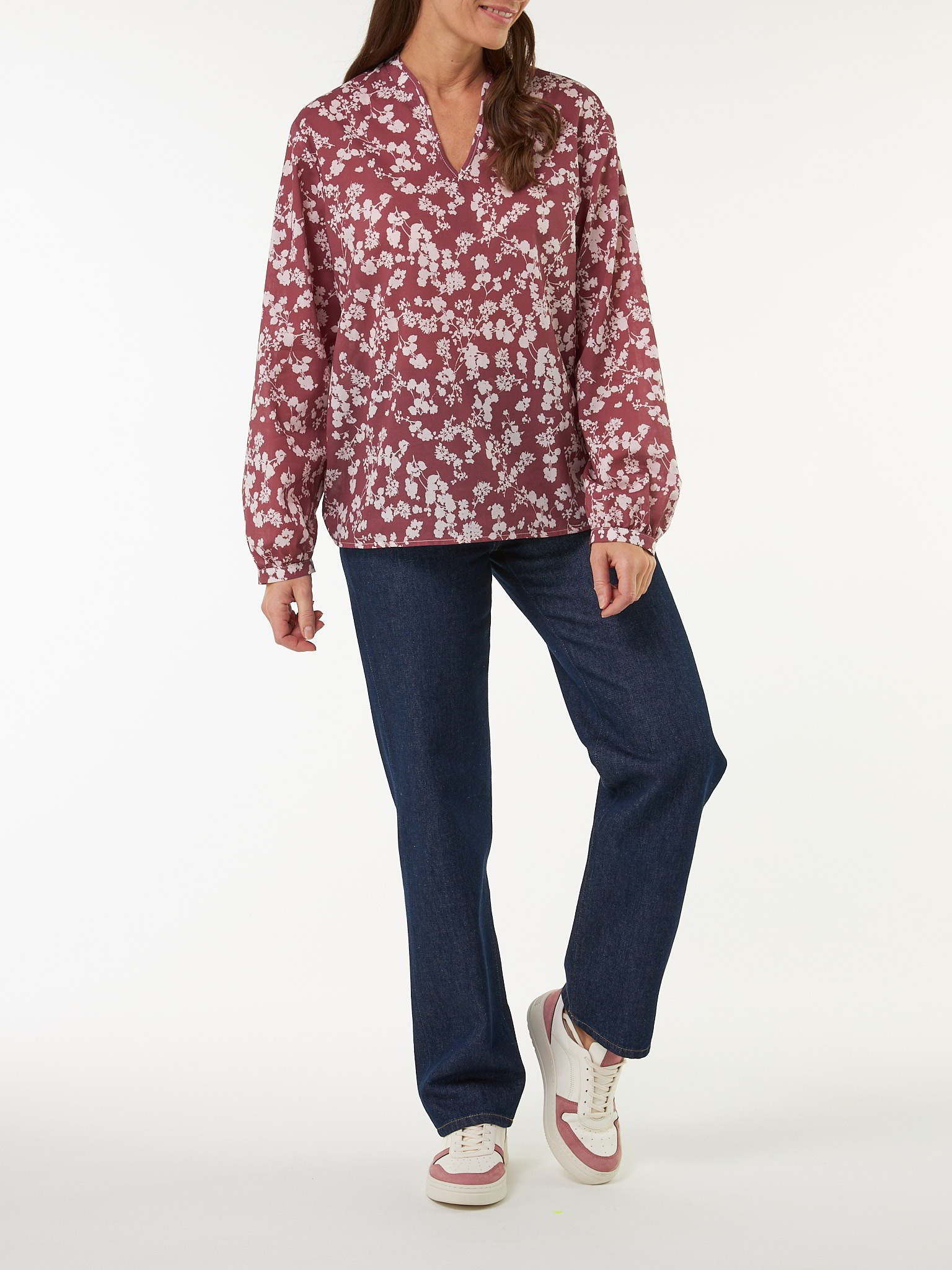 Feminin & leicht – mit verspielter RaffinesseLangarm-Bluse mit sanft gerundeter V-Ausschnitteinfassung und sommerlichem Blumendruck. Schmale Ärmelbündchen und Kräuselung an den Ballonärmeln verleihen dem Modell eine fließende Silhouette und dezente Volumenakzente. Die weiche Baumwoll-Qualität und der feminine Schnitt unterstreichen den modernen, zugleich entspannten Charakter dieser Bluse – ein vielseitiger Begleiter für viele Anlässe.Schnitt: leger. In Größe 36 ca. 64 cm lang. Unsere Models sind zwischen 175 cm und 177 cm groß und tragen Kleidergröße S.Ökologisch & fair produziertEin schönes Stück Natur, welches wir nur zu gern tragen. Dieses Kleidungsstück entsteht aus Baumwolle kbA und wird nach strengen Richtlinien – wie dem Global Organic Textile Standard – bei unserem Partnerbetrieb gefertigt.Material: 100 % Baumwolle.Materialherkunft: Baumwolle kbA aus der Türkei. Gewebt in der Türkei. Gefertigt in der Türkei nach dem GOTS. -