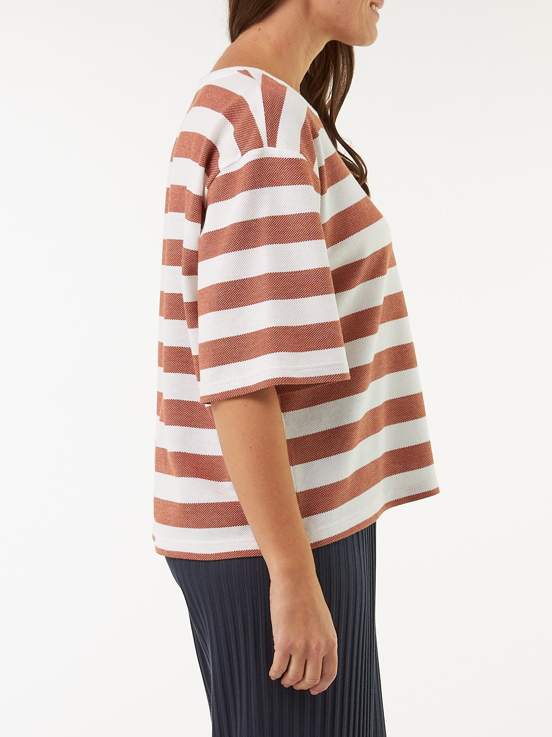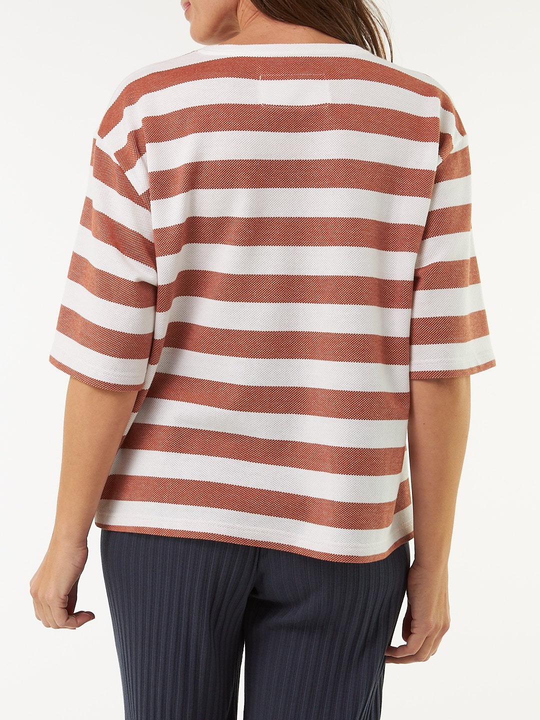 Fein strukturierter Piqué, leichter Griff und entspannte Silhouette: Das Loose-Fit-Shirt aus Baumwolle kbA präsentiert sich in harmonischer Blockstreifen-Optik mit überschnittener Schulterpartie, gerader Schnittform und Rundhalsausschnitt. Sehr leichter, legerer Fall sorgt für einen natürlichen Look mit lässigem Charakter.