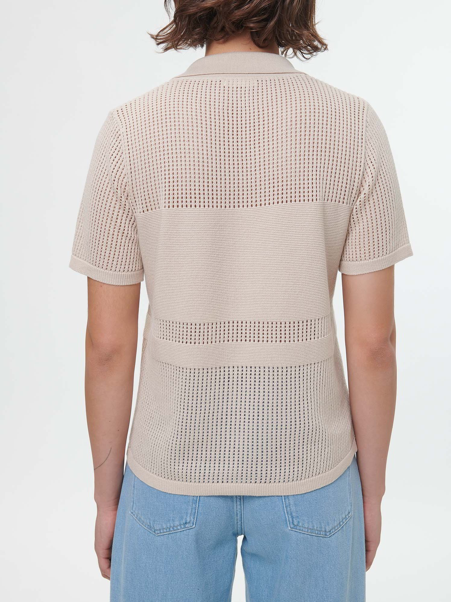 - Mesh-Strickmuster in Kombination mit Feinstrick-Einsätzen