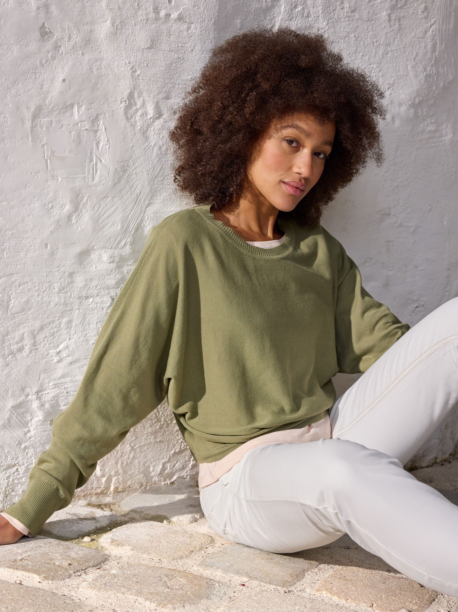 Sehr angenehm zu tragen: klassischer Pullover mit Fledermausärmeln, lockerer Passform und Rundhalsausschnitt. Die feine Strickart gibt dem Modell eine weiche und zugleich kompakte Festigkeit. Der Langarm-Pullover mit der zarten Rippstruktur ist wunderbar anschmiegsam: Es entsteht ein angenehmes Kleidungsstück für jeden Tag.