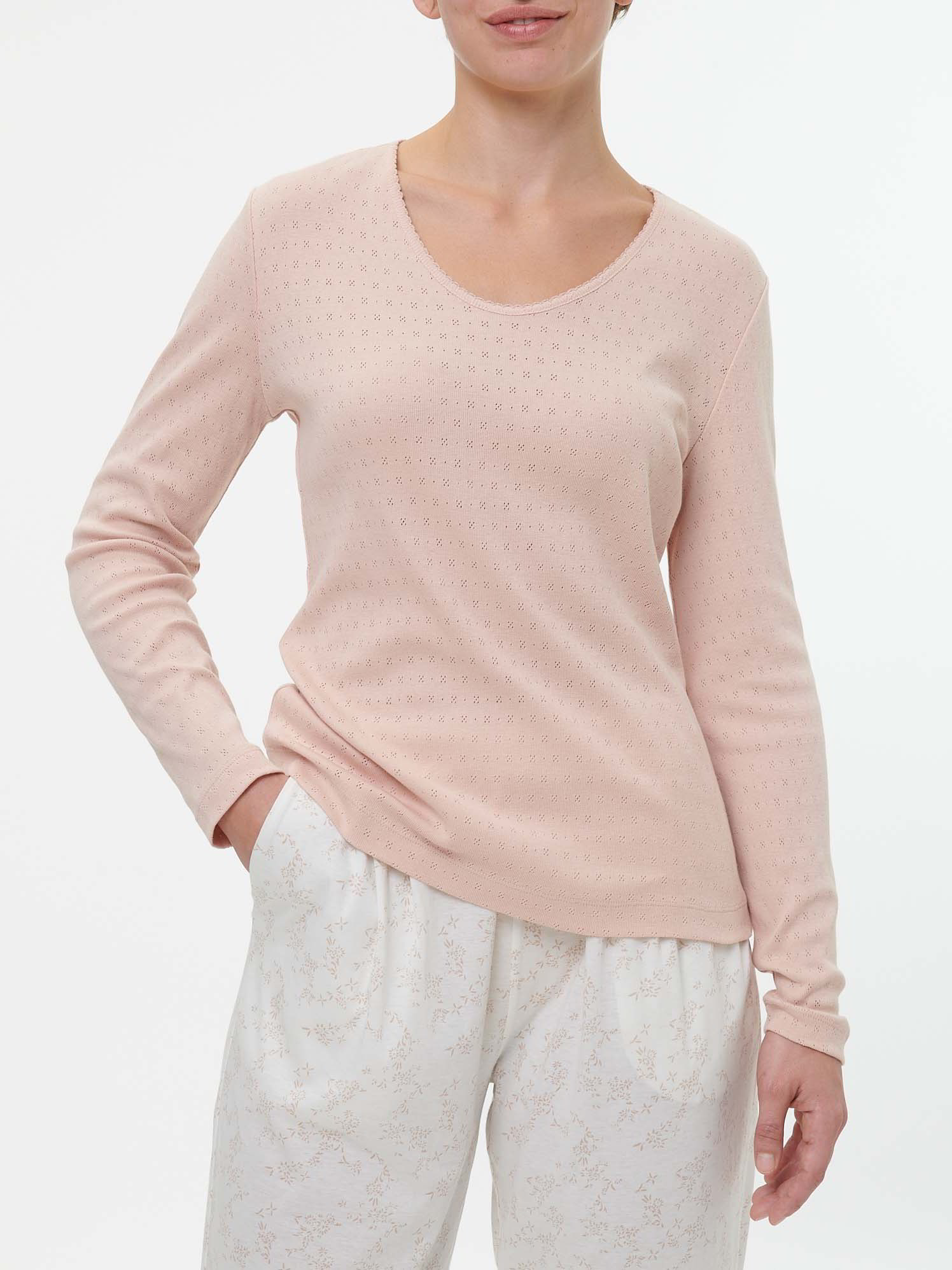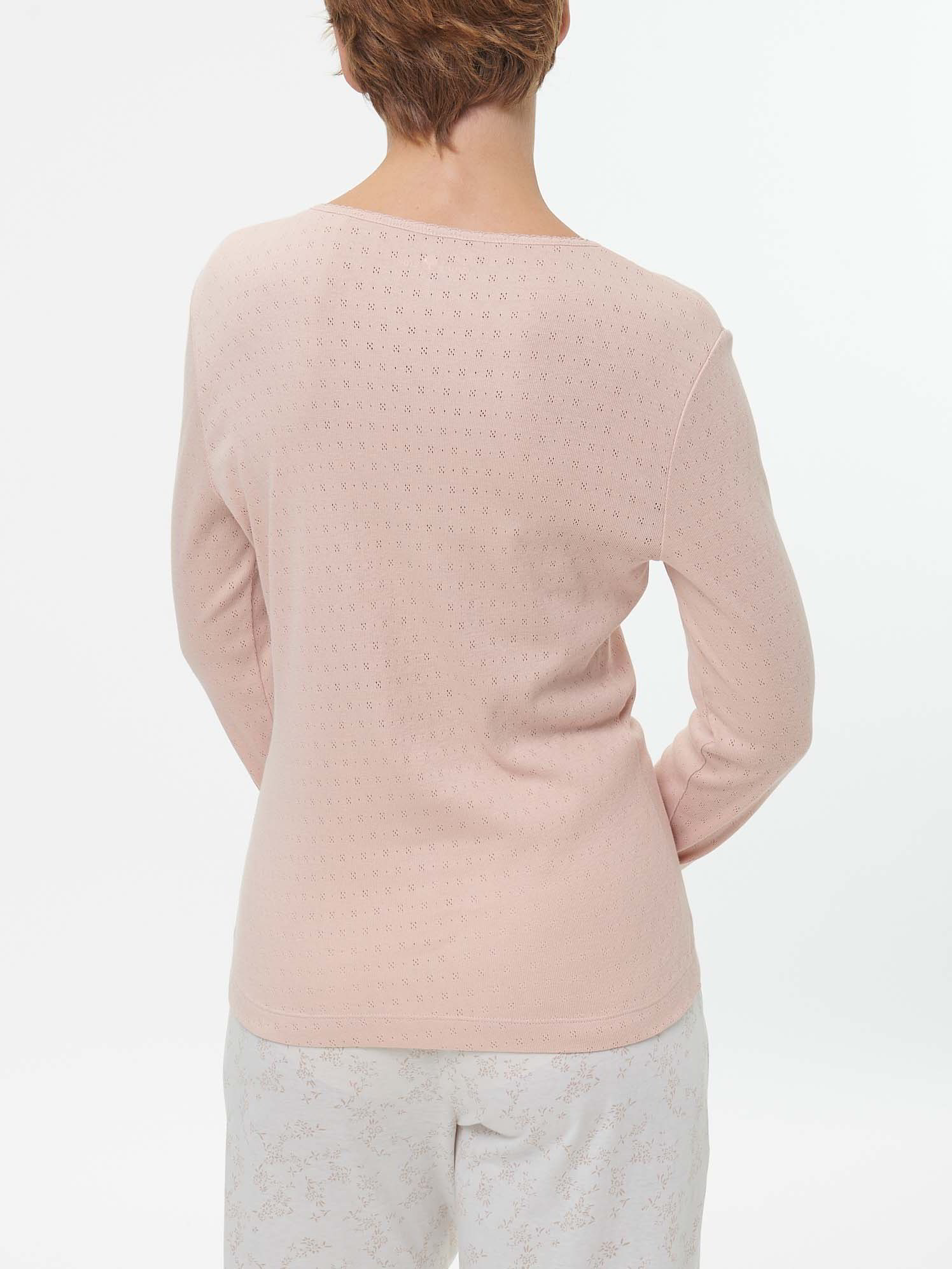 Spürbar weich, hochwertig und sanft zur HautZarte Farben kombiniert mit weicher Haptik: feminines Langarm-Shirt aus hautfreundlicher Baumwolle kbA. Das locker geschnittene Modell in feiner Ajour-Jersey-Qualität ist besonders weich zur Haut und spendet höchsten Tragekomfort. Zarte Details – wie eine feine Spitzenborte am abgerundeten V-Ausschnitt – vervollständigen das Shirt mit langen Ärmeln.Schnitt: figurumspielend. In Größe S (36/38) ca. 64 cm lang. Unsere Models sind zwischen 175 cm und 177 cm groß und tragen Kleidergröße S.Ökologisch & fair produziertEin schönes Stück Natur, welches wir nur zu gern tragen. Dieses Kleidungsstück entsteht aus Baumwolle kbA und wird nach strengen Richtlinien – wie dem Global Organic Textile Standard – bei unserem Partnerbetrieb gefertigt.Material: 100 % Baumwolle.Materialherkunft: Baumwolle kbA aus der Türkei. Gewirkt in der Türkei. Gefertigt in der Türkei nach dem GOTS. -