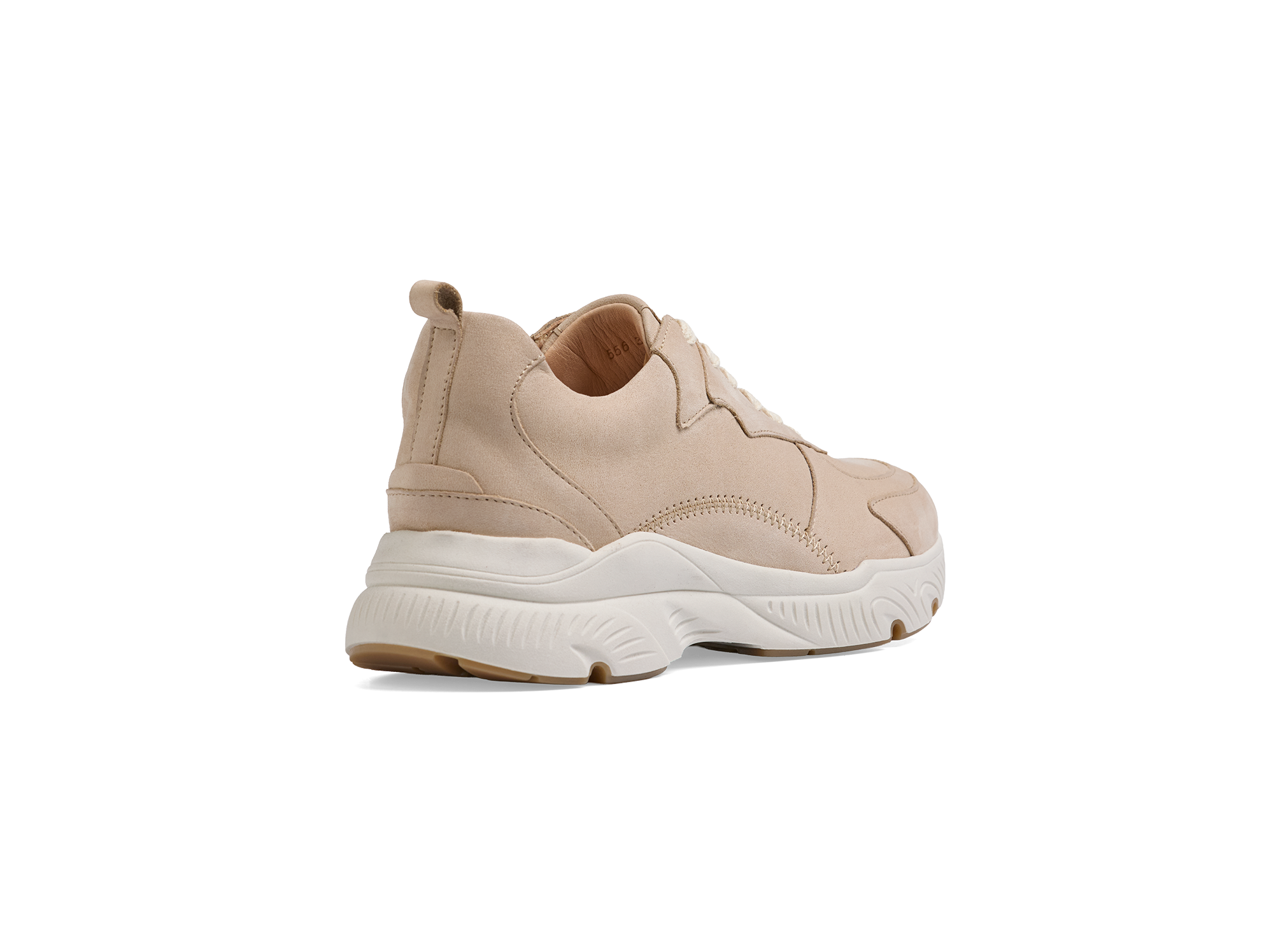 Sportiver Sneaker mit femininer Silhouette: Die etwas schmälere Form verleiht dem Schuh einen eleganten, gleichzeitig legeren Look. Gefertigt aus einer hochwertigen Kombination von Nubuk- und Nappaleder in natürlichem Sandton, fühlt sich der Sneaker angenehm weich an und passt zu zahlreichen Outfits. Die Schnürsenkel sorgen für sicheren Halt, während die TR-Sohle mit leichtem Plateau einen modernen Akzent setzt und für komfortables Gehen sorgt.