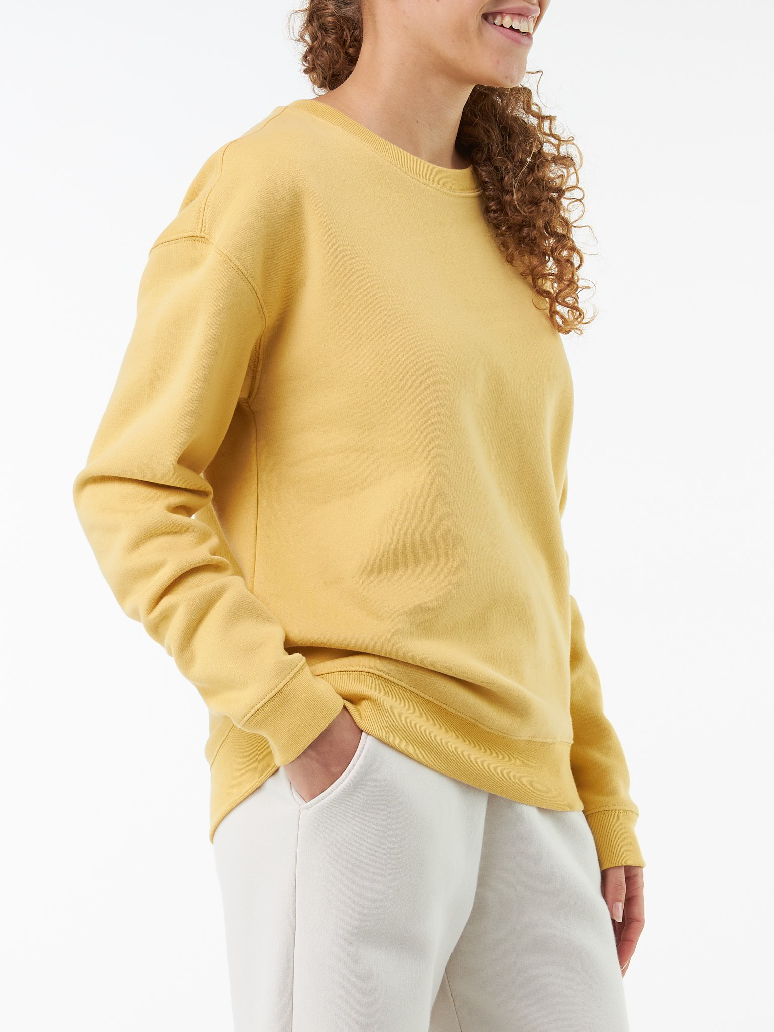 Ganz weich im Griff und recht leicht für ein Sweatshirt. Cappuccino ist eine interessante Farbe, ich war skeptisch, funktioniert aber sehr gut.