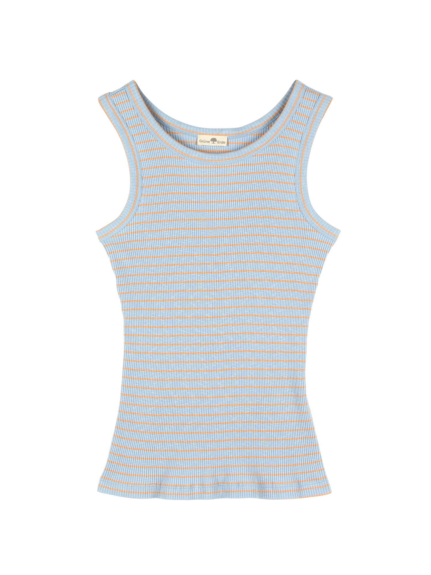 Top aus Bio Baumwolle, 37 ringel himmelblau/pfirsich, XS, GOTS