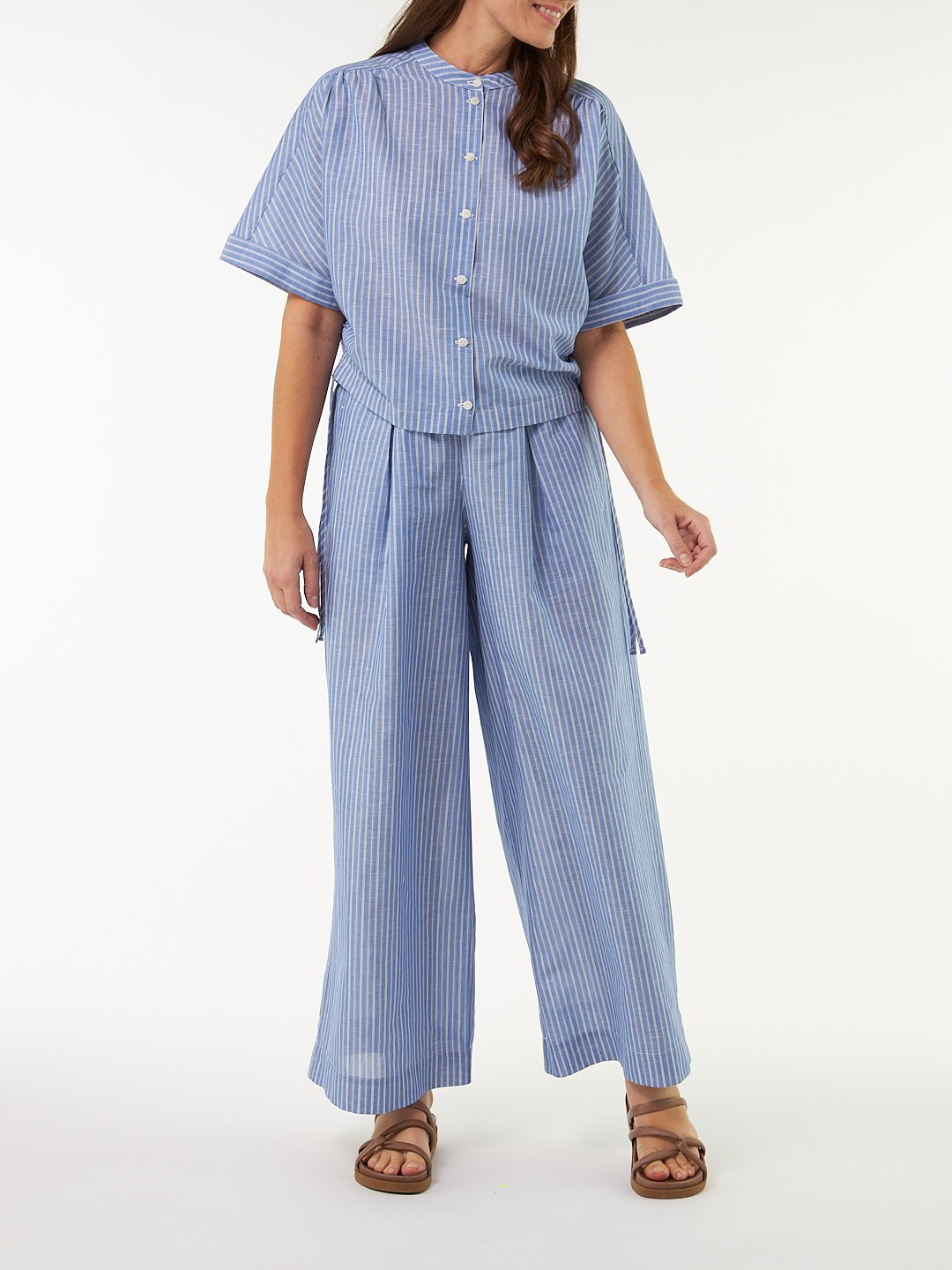 Bluse aus Bio Baumwolle und Leinen, 32 blau/weiss streif, 40, GOTS