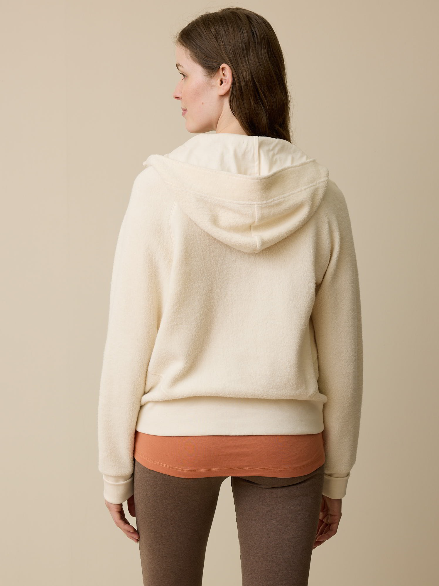 Hautschmeichelnd, pur und wunderbar wärmendAls besonderes Lieblingsstück gilt unser zeitloser Hoodie in flauschiger, softer Teddy-Plüsch-Qualität. Das kuschelige Material aus wertvoller Baumwolle kbA spendet ein wohliges Gefühl – über Saisonen hinweg! Abgerundet wird das puristische Modell mit der lockeren Passform mit einer gefütterten Kapuze mit angeschnittener Kragenpartie und Reißverschluss mit Ring-Puller und Untertrittsleiste. Weitere Details: aufgesetzte Känguruhtasche, Flatlock-Details entlang der Raglannähte und Rippbündchen an den Abschlüssen.Schnitt: leger. In Größe S (36/38) ca. 62 cm lang. Unsere Models sind zwischen 175 cm und 177 cm groß und tragen Kleidergröße S.Ökologisch & fair produziertEin schönes Stück Natur, welches wir nur zu gern tragen. Dieses Kleidungsstück entsteht aus Baumwolle kbA und wird nach strengen Richtlinien – wie dem Global Organic Textile Standard – bei unserem Partnerbetrieb gefertigt.Material: 100 % Baumwolle.Materialherkunft: Baumwolle kbA aus Griechenland. Gewirkt in Griechenland. Gefertigt in Bulgarien. -