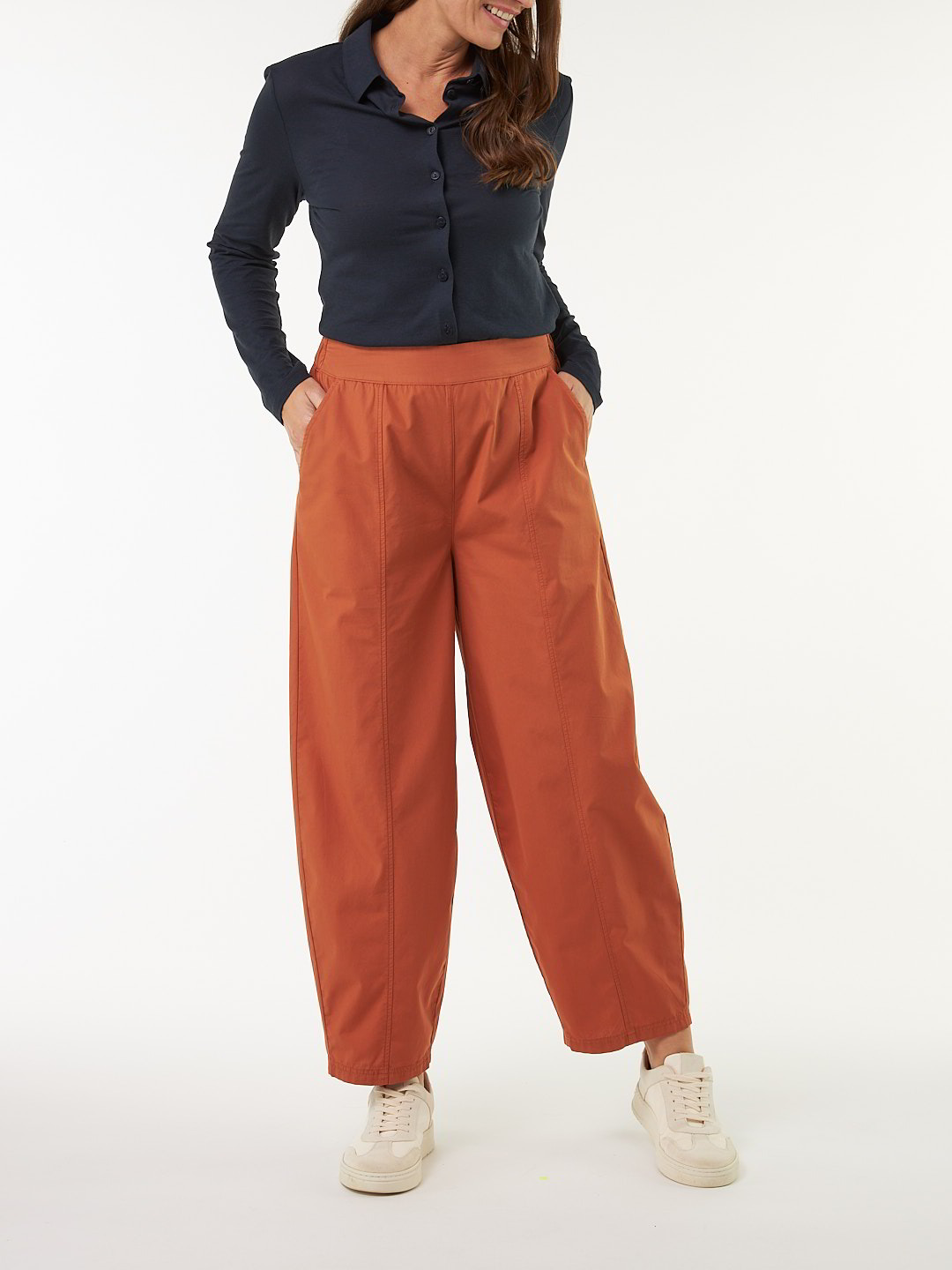 O-Shape-Hose in sommerlicher Popeline-Qualität: Das Modell mit elastischem Bund und verkürzter Länge sorgt für einen entspannten Casual-Baggy-Fit. Zwei seitliche Eingriffstaschen unterstreichen die praktische Seite, während die leichte Qualität für optimalen Tragekomfort an warmen Tagen sorgt.