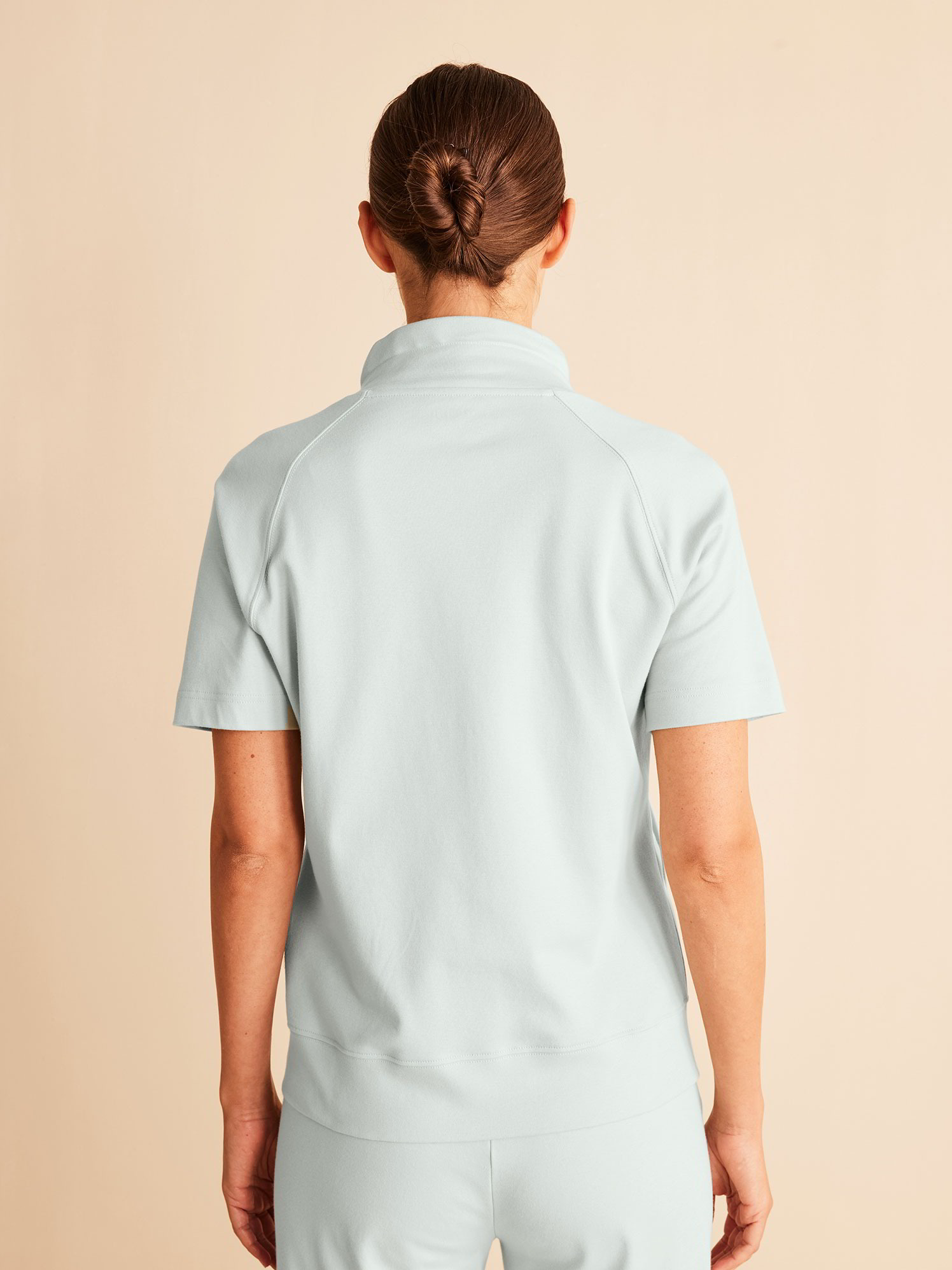 Sportiv und raffiniert: Die Kurzarm-Jacke aus weicher Bio-Baumwolle ist ein idealer Begleiter im Alltag. Die sanften Farbtöne, das hochwertige Naturmaterial und die vielen Details sorgen für einen hohen Tragekomfort und ein müheloses Kombinieren. Das Modell aus hautfreundlicher Pima-Baumwolle wird bei unserem Partnerbetrieb nach dem strengen Global Organic Textile Standard gefertigt und zertifiziert.Die Jacke mit den Raglanärmeln überzeugt mit seitlichen Eingriffstaschen, einem Reißverschluss auf der Vorderseite sowie einem hohen Kragen mit integriertem Zugband aus edlem Satin.Schnitt: leger. In Größe S (36/38) ca. 62 cm lang.Unsere Models sind zwischen 175 cm und 177 cm groß und tragen Kleidergröße 36.Verarbeitung: 100 % Baumwolle. Baumwolle kbA aus der Türkei.Gewirkt in Litauen.Fair gefertigt in Litauen nach dem GOTS. -