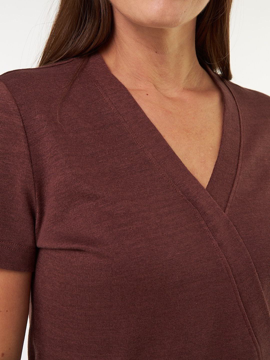 Kleid in Wickeloptik aus Leinen, 70 chocolate, 34, GOTS