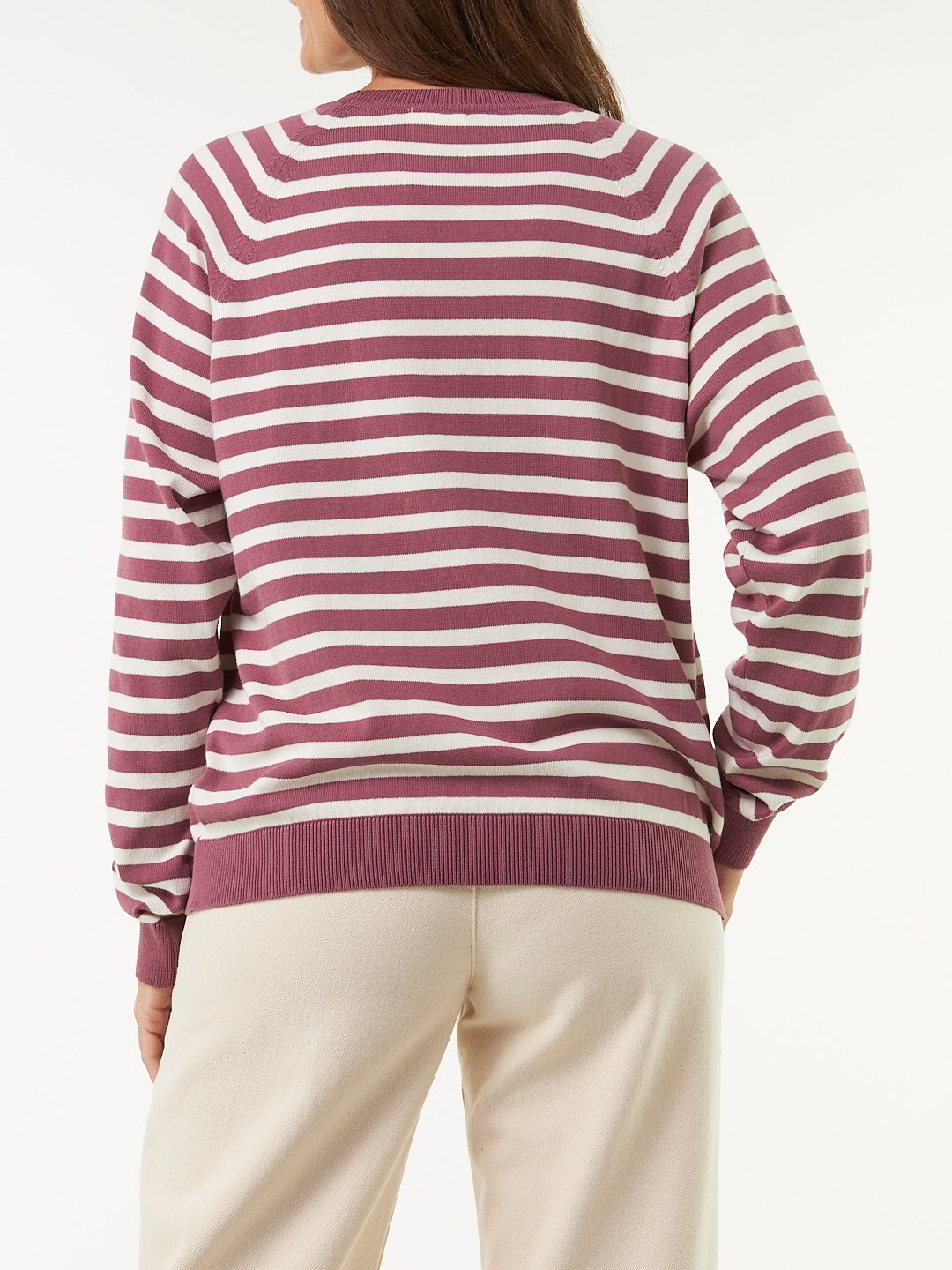 Weicher Strick, moderne StreifenDer Strickpullover mit langen Raglanärmeln überzeugt durch hochwertige Pima-Baumwolle – sanft zur Haut, anschmiegsam und weich. Ein halsnaher Rundhalsausschnitt und kontrastfarbene Rippbündchen an den Abschlüssen prägen die komfortable, lässige Silhouette.Schnitt: leger. In Größe S (36/38) ca. 58 cm lang. Unsere Models sind zwischen 175 cm und 177 cm groß und tragen Kleidergröße S.Ökologisch & fair produziertEin schönes Stück Natur, welches wir nur zu gern tragen. Dieses Kleidungsstück entsteht aus Baumwolle kbA und wird nach strengen Richtlinien – wie dem Global Organic Textile Standard – bei unserem Partnerbetrieb gefertigt.Material: 100 % Baumwolle.Materialherkunft: Baumwolle kbA aus der Türkei. Gestrickt in Portugal. Gefertigt in Portugal nach dem GOTS. -