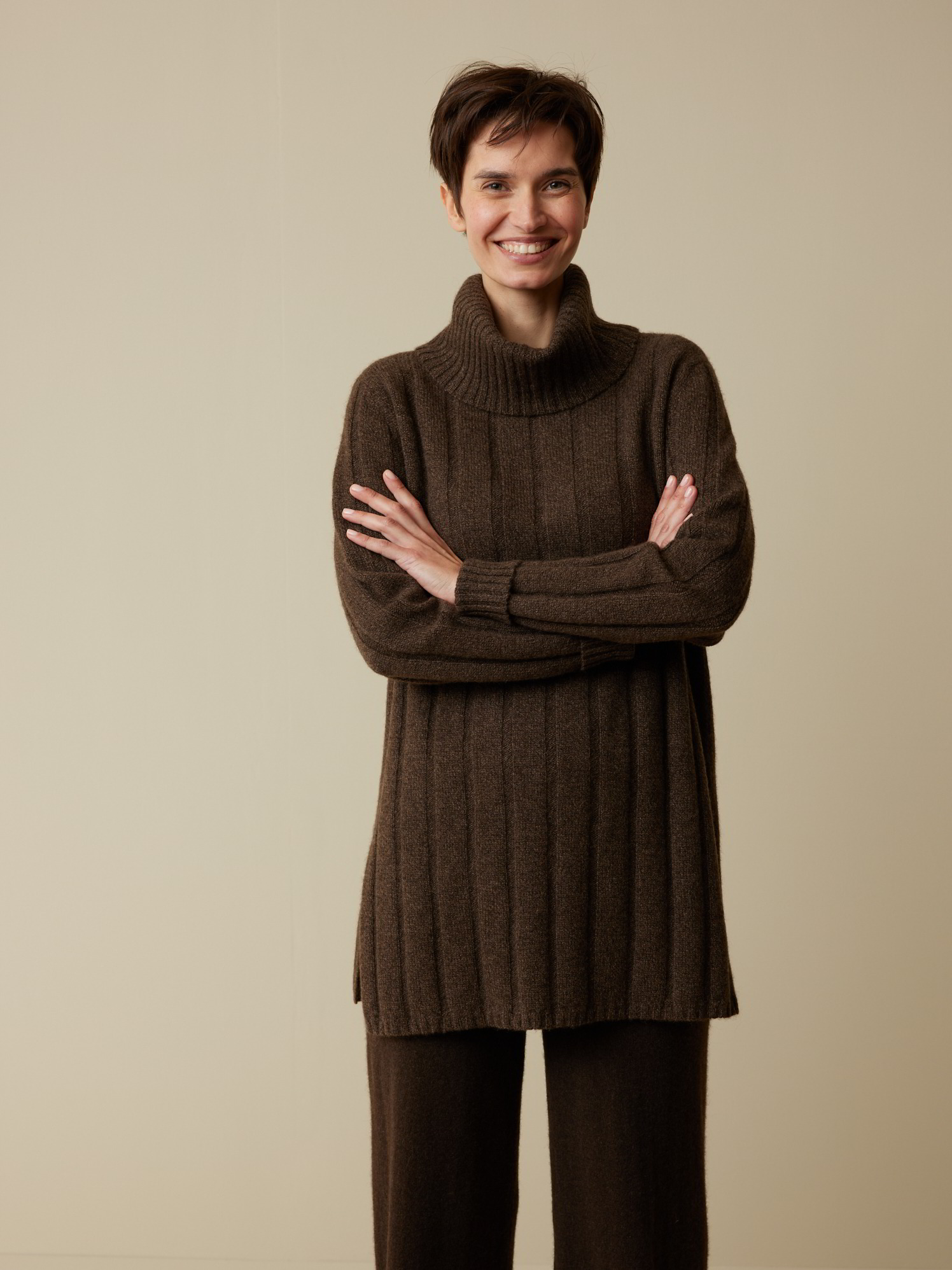 Ungefärbter Rollkragenpullover aus hochwertigem, ungefärbtem Yakhaar. In den Vordergrund rückt die breite Rippen-Struktur, abgerundet mit einem erdenden Farbton – natürlich & pur. Das lockere Modell hat einen großzügigen Rollkragen, 2x2-Rippbündchem am Ärmelsaum und hohe Seitenschlitze. Die wertvolle Yakhaar-Qualität ist weich, anschmiegsam und angenehm auf der Haut.