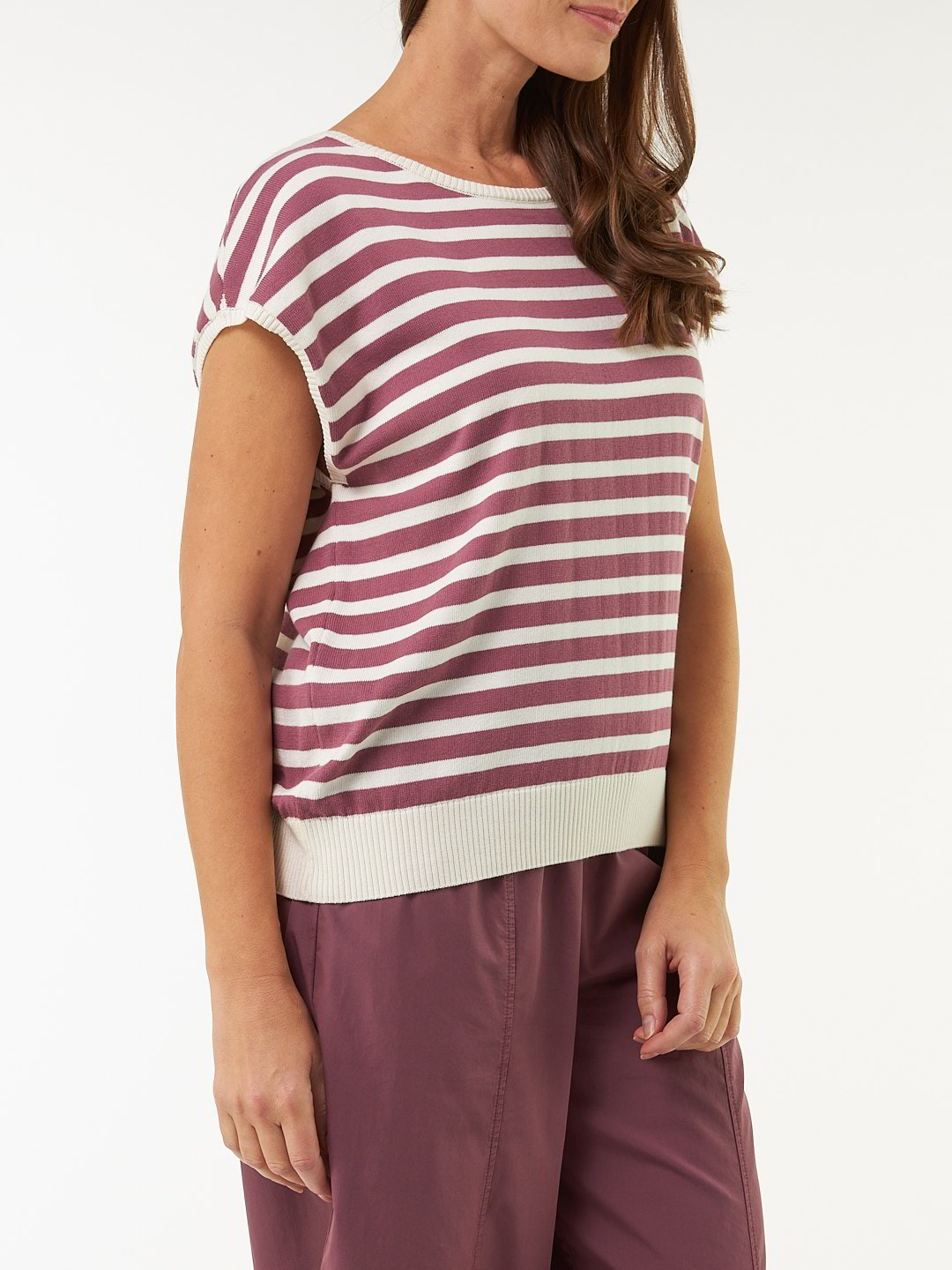Weicher Strick, moderne StreifenDas ärmellose Stricktop überzeugt durch hochwertige Pima-Baumwolle – sanft zur Haut, anschmiegsam und weich. Überschnittene Schultern und kontrastfarbene Rippbündchen an den Abschlüssen prägen den legeren Schnitt und verleihen dem Top eine moderne, komfortable Silhouette.Schnitt: leger. In Größe S (36/38) ca. 57 cm lang. Unsere Models sind zwischen 175 cm und 177 cm groß und tragen Kleidergröße S.Ökologisch & fair produziertEin schönes Stück Natur, welches wir nur zu gern tragen. Dieses Kleidungsstück entsteht aus Baumwolle kbA und wird nach strengen Richtlinien – wie dem Global Organic Textile Standard – bei unserem Partnerbetrieb gefertigt.Material: 100 % Baumwolle.Materialherkunft: Baumwolle kbA aus der Türkei. Gestrickt in Portugal. Gefertigt in Portugal nach dem GOTS. -