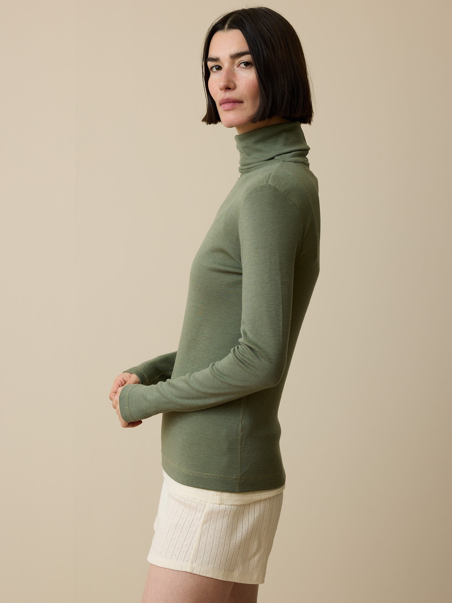 Rollkragen-Shirt aus hochwertiger Merinowolle: weich, temperaturausgleichend, anschmiegsam. Das Naturmaterial ist trageangenehm, wärmend und sorgt für ein leichtes Gefühl auf der Haut. Komplementiert wird der figurumspielende Schnitt mit einem Rollkragen und langen Ärmeln. Das Modell mit der sanften Melange-Optik ist ein zeitloser Allrounder – für zuhause oder unterwegs.