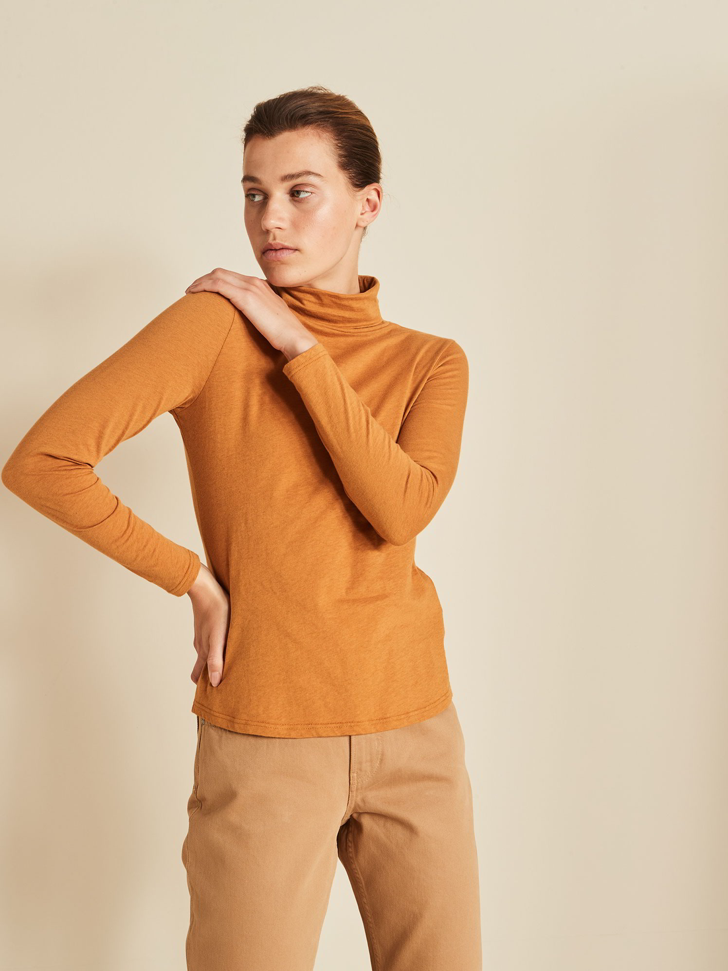Shirt-Rollkragen, 50 bernstein melange, 34, GOTS