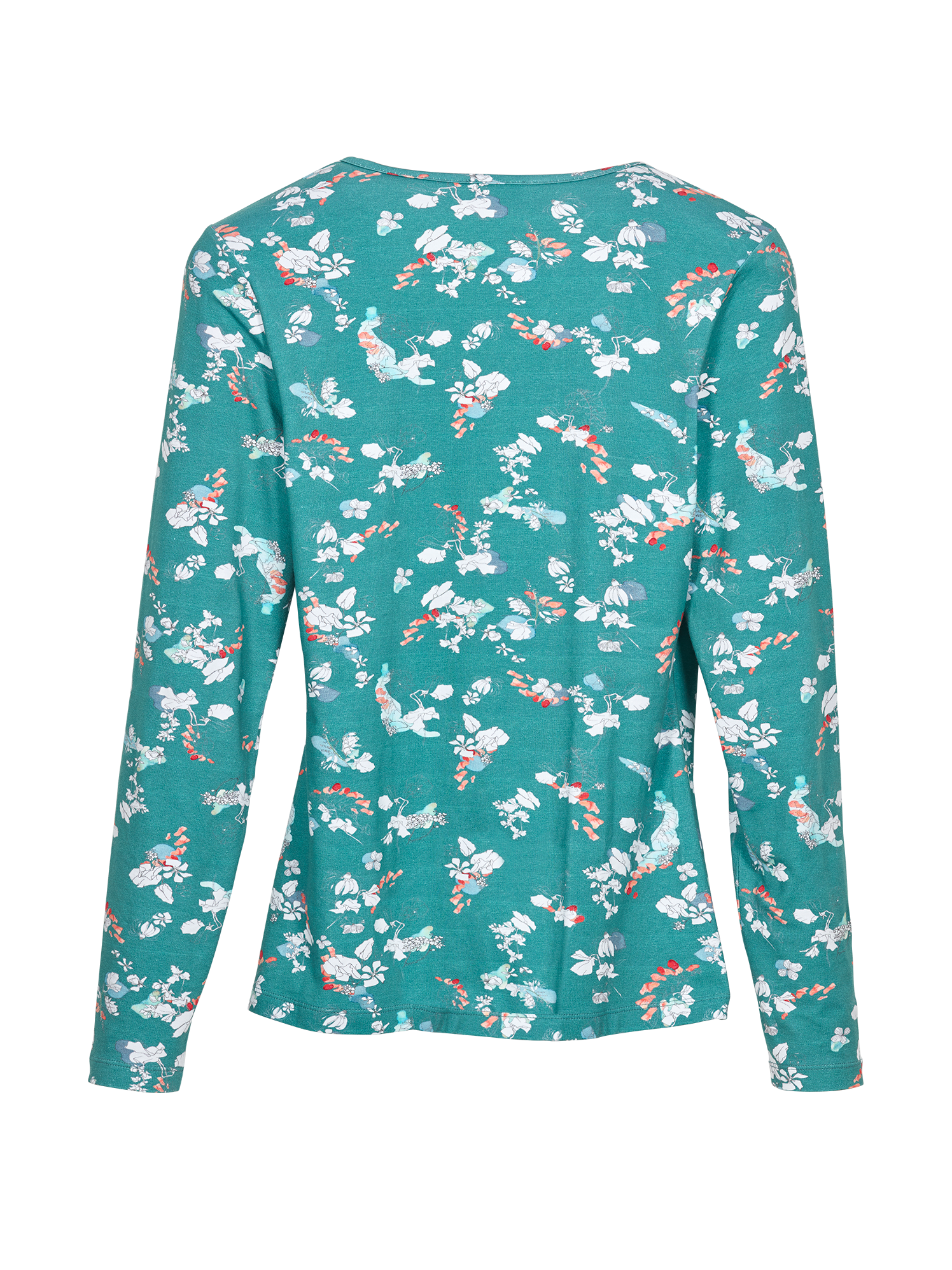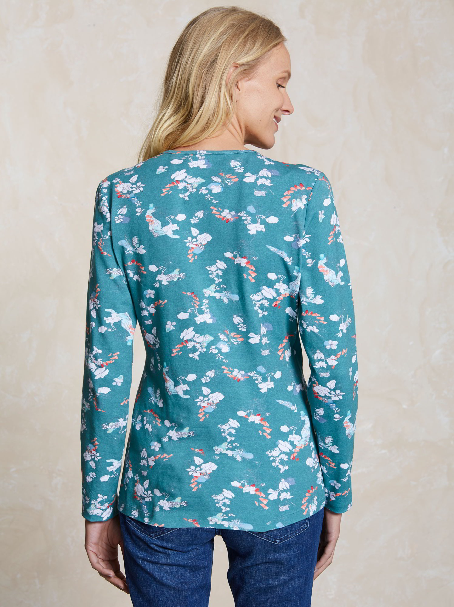 Shirt-Wickeloptik, 96 blumendruck klein türkis, 44, GOTS