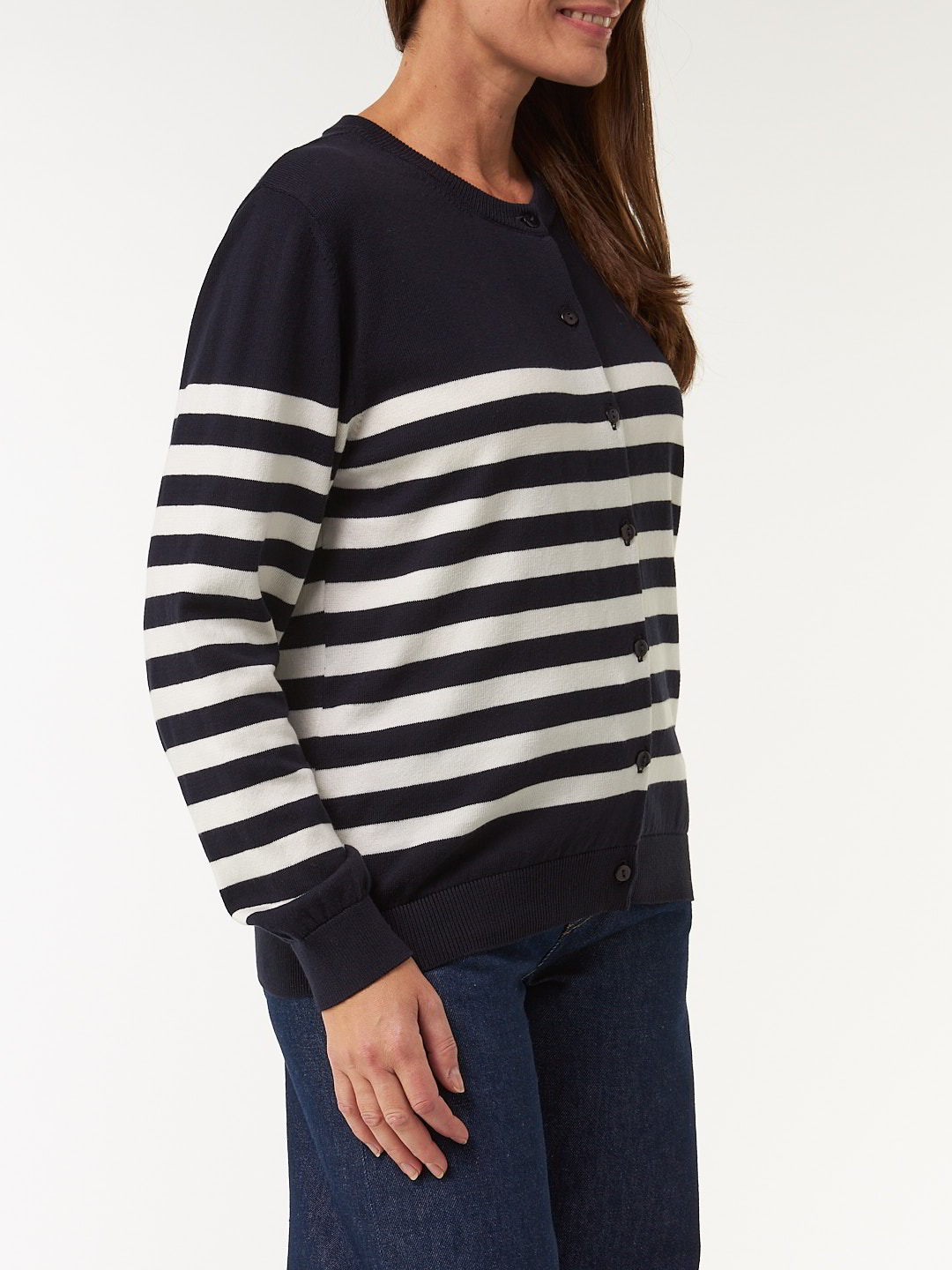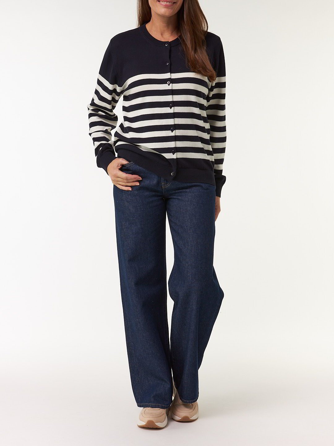 Weicher Strick, moderne StreifenDie Strickjacke mit halsnahem Rundhalsausschnitt und durchgehender Knopfleiste überzeugt durch hochwertige Pima-Baumwolle – sanft zur Haut, anschmiegsam und weich. Rippbündchen an den Abschlüssen prägen den legeren Schnitt und verleihen der Jacke eine komfortable, lässige Silhouette.Schnitt: leger. In Größe S (36/38) ca. 59 cm lang. Unsere Models sind zwischen 175 cm und 177 cm groß und tragen Kleidergröße S.Ökologisch & fair produziertEin schönes Stück Natur, welches wir nur zu gern tragen. Dieses Kleidungsstück entsteht aus Baumwolle kbA und wird nach strengen Richtlinien – wie dem Global Organic Textile Standard – bei unserem Partnerbetrieb gefertigt.Material: 100 % Baumwolle.Materialherkunft: Baumwolle kbA aus der Türkei. Gestrickt in Portugal. Gefertigt in Portugal nach dem GOTS. -