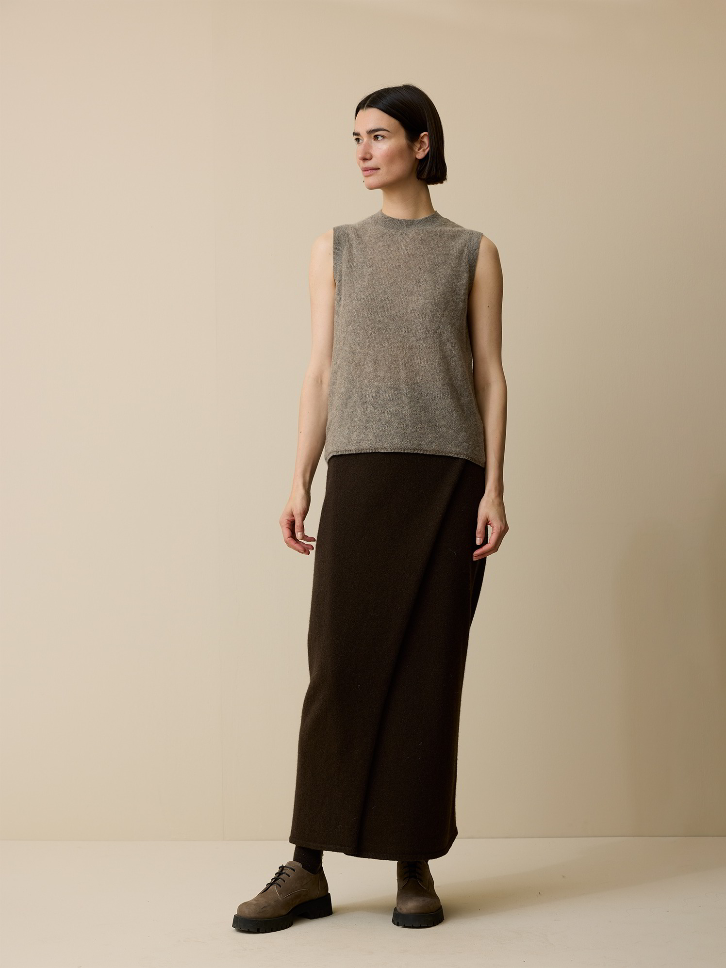 Hochwertiges Basic für eine natürliche GarderobeSchlicht, hochwertig, zeitlos: Das feine Stricktop aus ungefärbtem Yakhaar wird garantiert ein Lieblingsstück zum Kombinieren. Geradlinig geschnitten überzeugt es mit einem anliegendem Rundhalsausschnitt und zarten Ripp-Details an Hals- und Ärmelausschnitt. Abgerundet wird die unaufgeregte Silhouette mit einem lose fallenden Saum.Schnitt: figurumspielend. In Größe S (36/38) ca. 57 cm lang. Unsere Models sind zwischen 175 cm und 177 cm groß und tragen Kleidergröße S.Ökologisch & fair produziertEin schönes Stück Natur, welches wir nur zu gern tragen. Dieses Kleidungsstück entsteht aus kostbarem Yakhaar und wird in größter ökologischer Sorgfalt bei unserem Partnerbetrieb gefertigt. Die gesamte Wertschöpfung bleibt im Land der Rohfaser – fair gegenüber Mensch, Tier und Natur. Um die Langlebigkeit des Naturproduktes zu erhalten, empfehlen wir einen sorgsamen und wertschätzenden Umgang im alltäglichen Gebrauch.Material: 100 % Yakhaar.Materialherkunft: Yakhaar aus der Mongolei. Gestrickt in der Mongolei. Gefertigt in der Mongolei. -