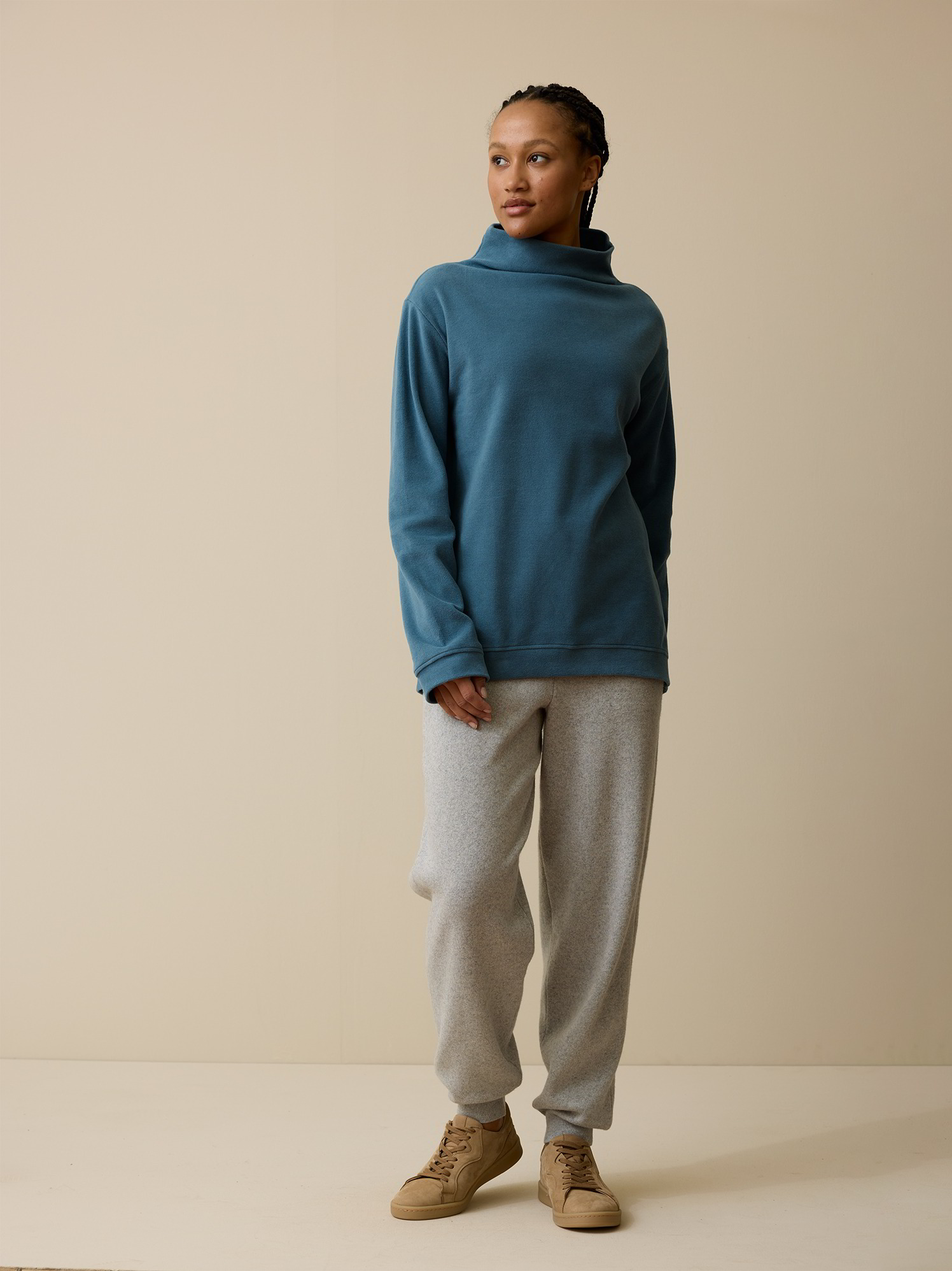 Zeitlose Farbgebung, pure GemütlichkeitBequem präsentiert sich der Long-Sweater aus weicher Baumwolle. Für ein leichtes Gefühl auf der Haut sorgt die gebrushte Jersey-Qualität mit der leicht aufgerauhten Ripp-Struktur auf der Außenseite. Highlight: Turtleneck- Halsausschnitt mit angeschnittenem Kragen und verkürztem, gerundetem Saumverlauf am Vorderteil.Schnitt: sehr leger. Rückenlänge in Größe S (36/38) ca. 70 cm. Unsere Models sind zwischen 175 cm und 177 cm groß und tragen Kleidergröße S.Ökologisch & fair produziertEin schönes Stück Natur, welches wir nur zu gern tragen. Dieses Kleidungsstück entsteht aus Baumwolle kbA und wird nach strengen Richtlinien – wie dem Global Organic Textile Standard – bei unserem Partnerbetrieb gefertigt.Material: 100 % Baumwolle.Materialherkunft: Baumwolle kbA aus der Türkei. Gewirkt in Portugal. Gefertigt in Portugal nach dem GOTS. -