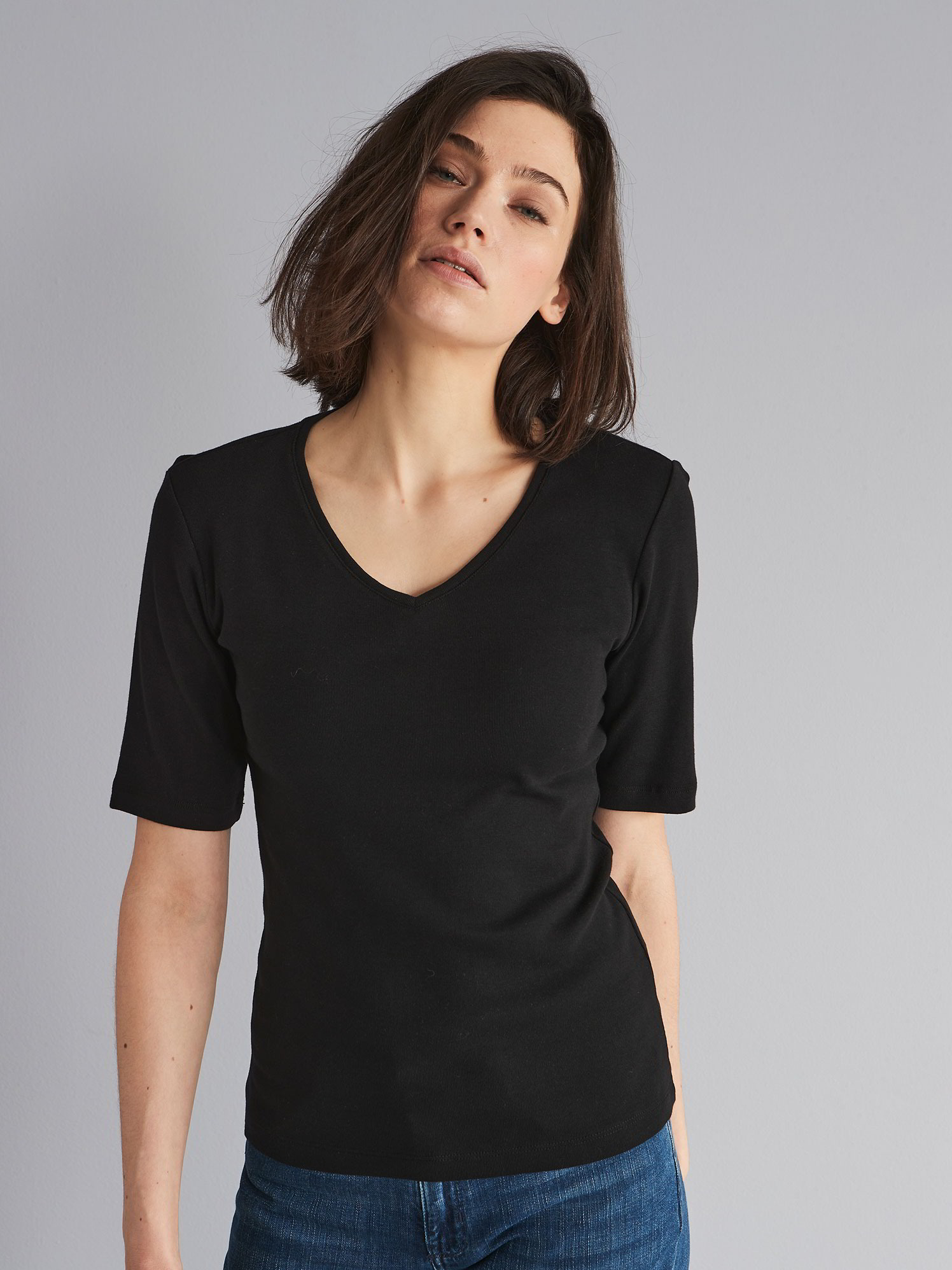 V-Ausschnitt und Halbarm, diese Komibination ist ein T-Shirt Klassiker und sollte unbedingt nochmal aufgelegt werden. Gerne in Grüntönen und Herbstfarben…