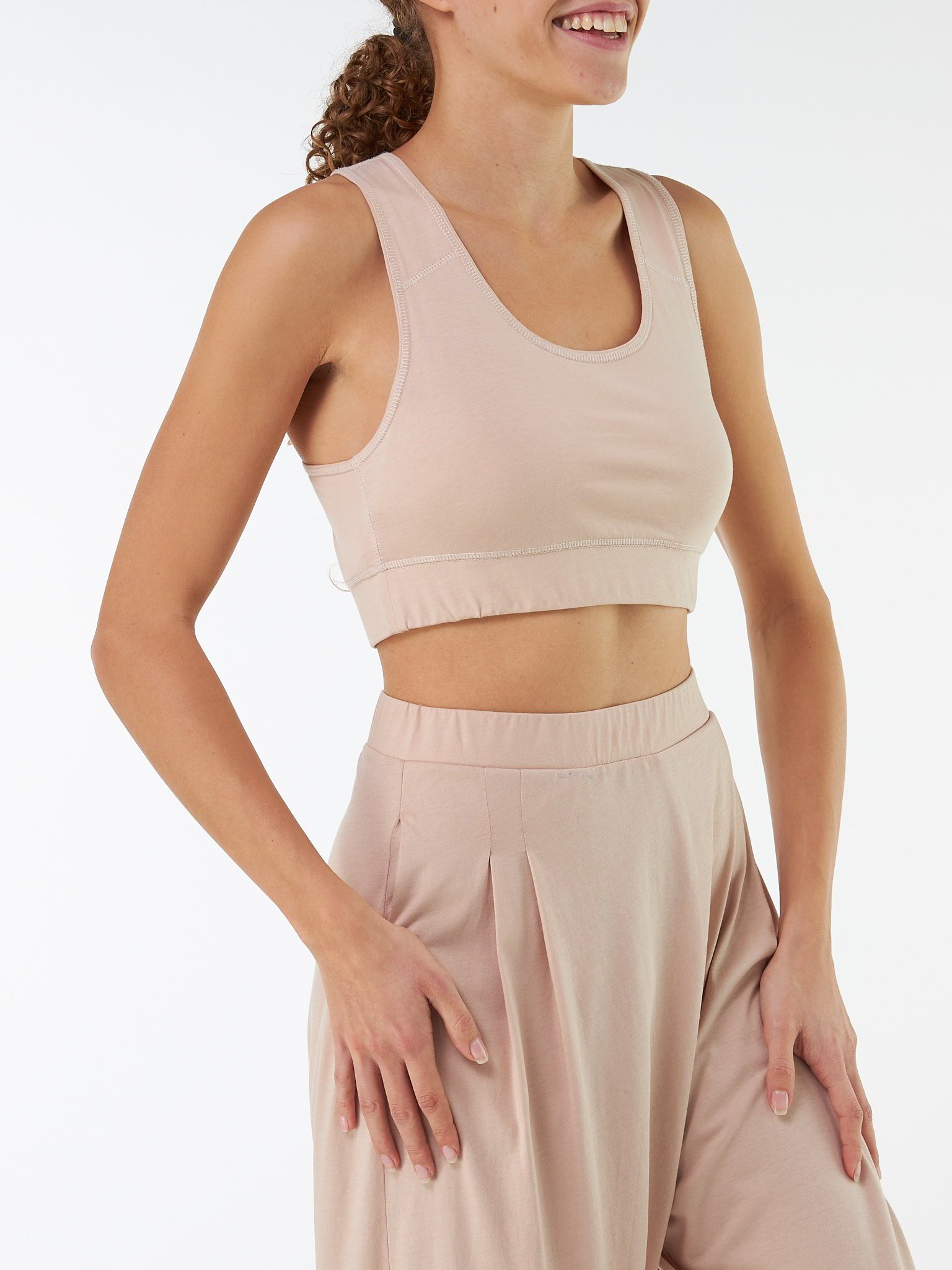 Sportliches Yoga-Bra-Top aus feiner Baumwolle und ohne Elasthan – anschmiegsam, weich, flexibel. Das Bustier ist doppelt gearbeitet, mit sportivem Boxer-Rücken, tiefem Armausschnitt und breitem Gummibund am Saum. Dank der durchdachten Schnittführung entsteht natürlicher Tragekomfort und optimale Bewegungsfreiheit.