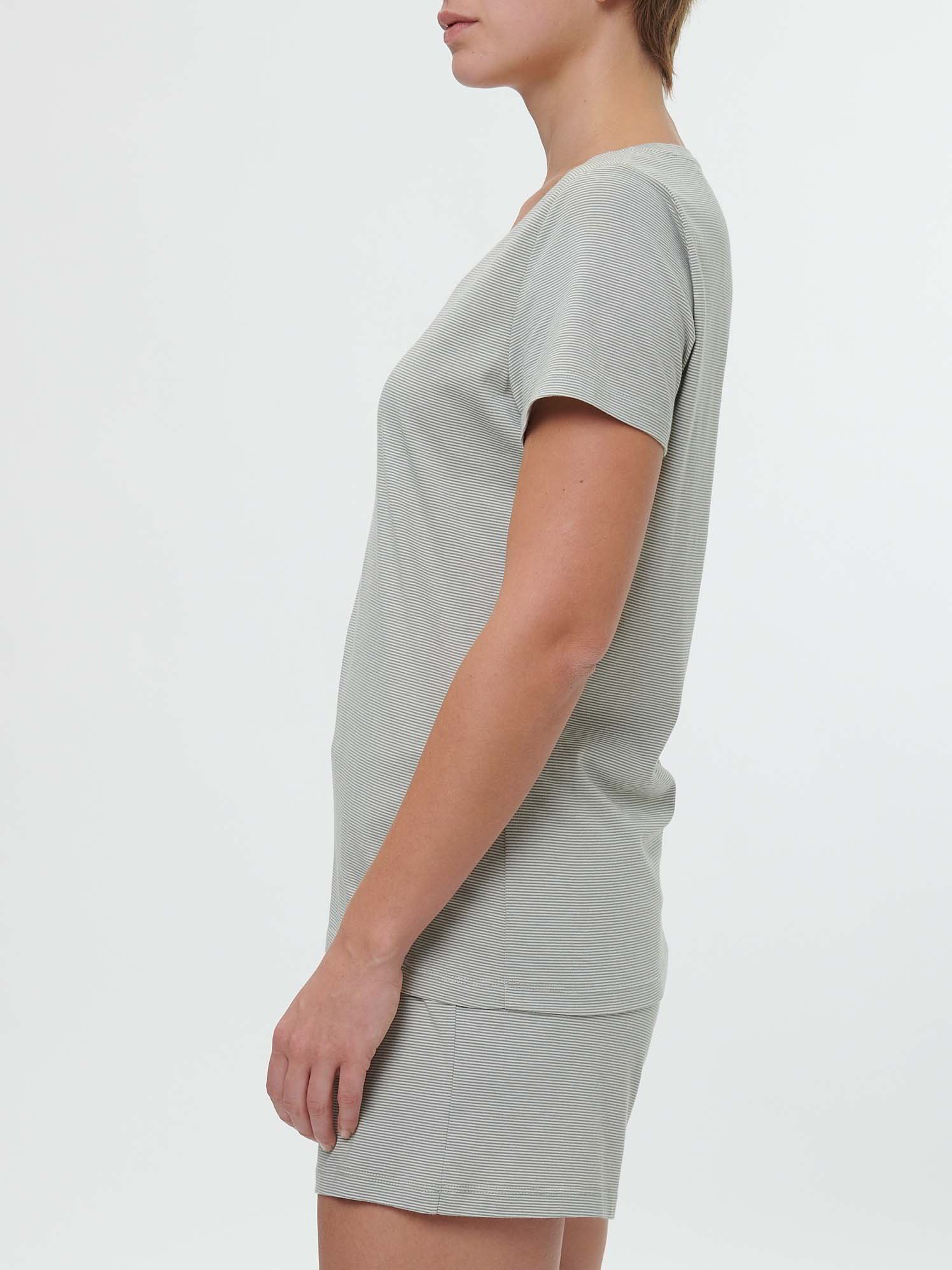 • Schlafshirt aus Bio-Baumwolle, salbei/weiss ringel
