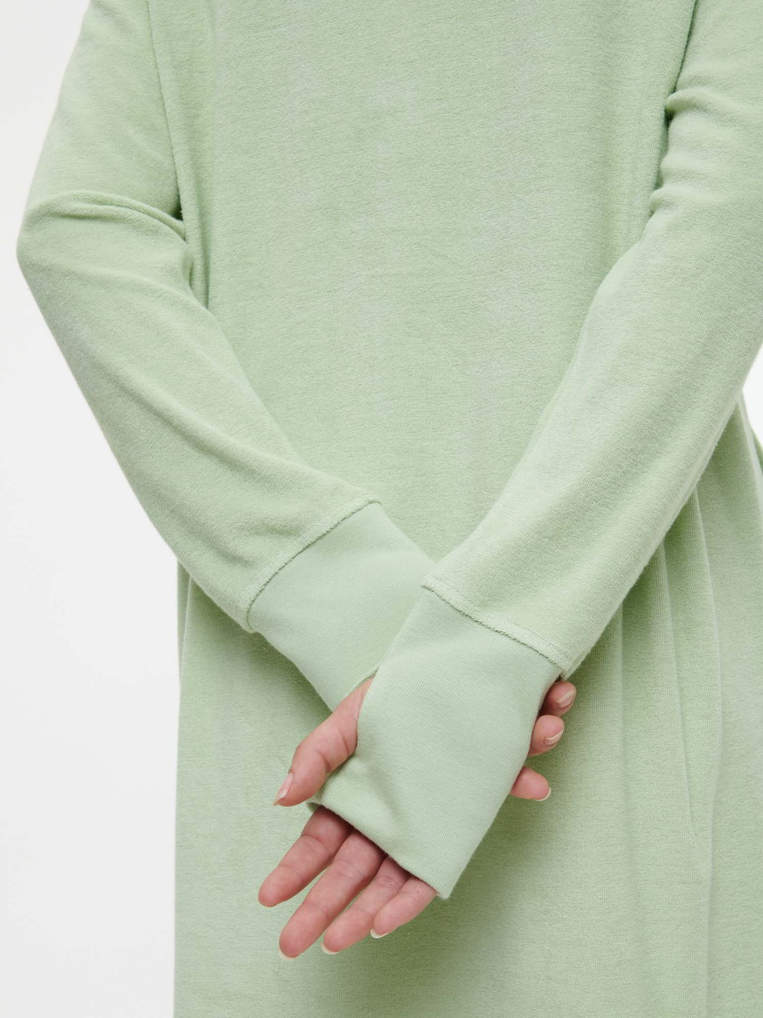 Das Frottee Kleid gefällt mir gut. Leider gefällt mir aber wie fast immer die Farbe nicht. Viel zu hell dieses grün. Das Daumenloch ist auch mehr als überflüssig. Frottee top aber bitte in kraftig Türkis oder einer anderen kräftigeren Farbe.
