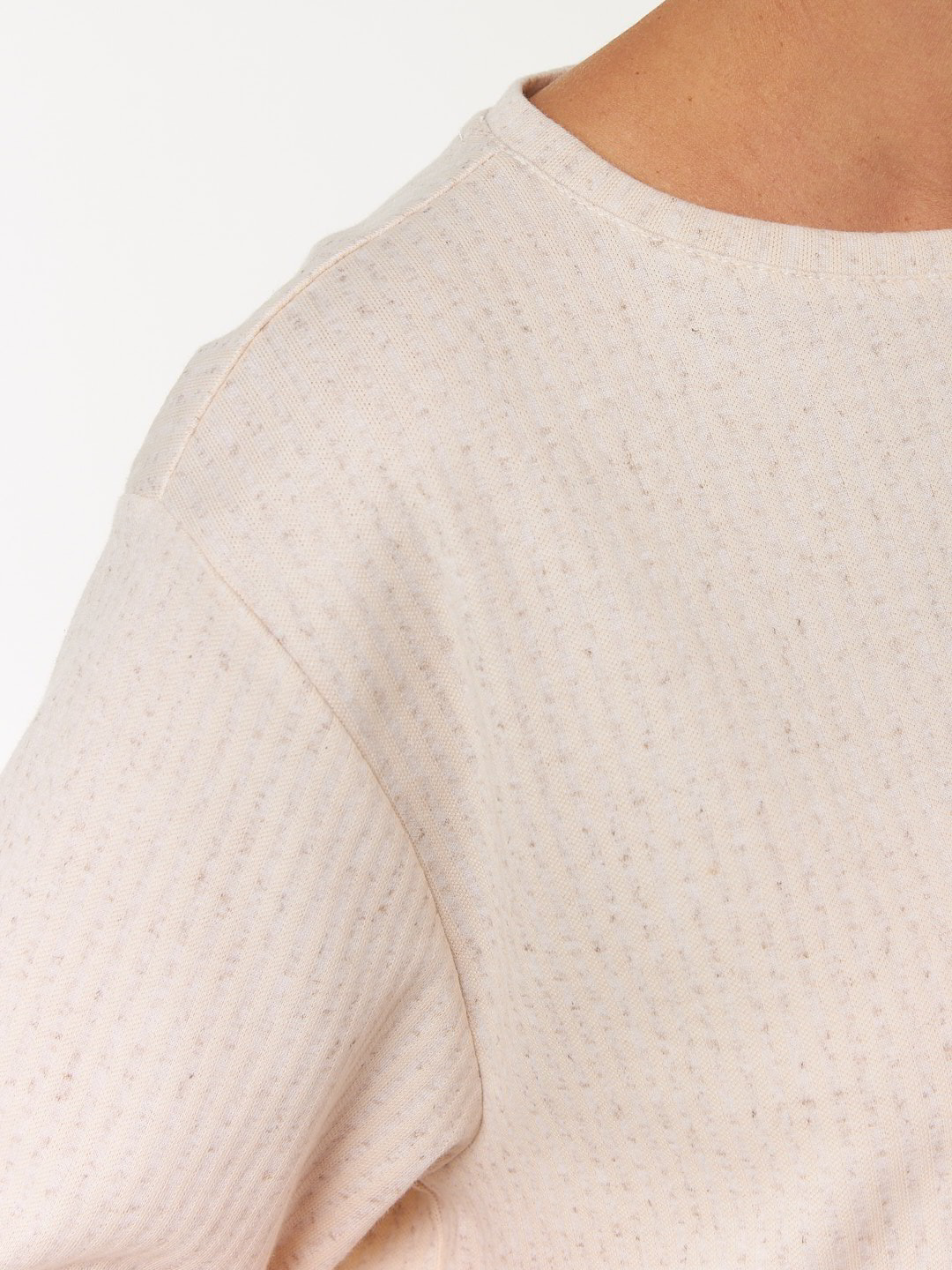 Locker fallend, natürlich strukturiertDas Loose-Shirt vereint weiche Baumwolle mit edlem Leinen und besticht durch natürliche Streifenoptik. Ein halsnaher Rundhalsausschnitt, überschnittene Schulterpartien und seitliche Schlitze am Saum prägen den entspannten Look. Ein natürliches Basic für jede Gelegenheit!Schnitt: oversize. In Größe S (36/38) ca. 58 cm lang. Unsere Models sind zwischen 175 cm und 177 cm groß und tragen Kleidergröße S.Ökologisch & fair produziertEin schönes Stück Natur, welches wir nur zu gern tragen. Dieses Kleidungsstück entsteht aus Baumwolle kbA und wird nach strengen Richtlinien – wie dem Global Organic Textile Standard – bei unserem Partnerbetrieb gefertigt.Material: 90 % Baumwolle, 10 % Leinen.Materialherkunft: Baumwolle kbA aus der Türkei. Leinen kbA aus Belgien. Gewirkt in der Türkei. Gefertigt in der Türkei nach dem GOTS. -