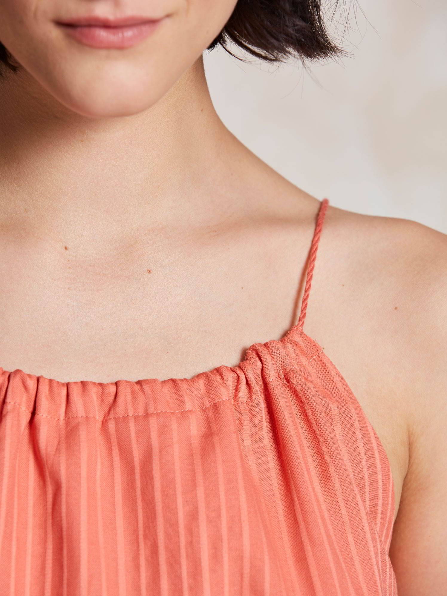 Was für ein niedliches Teil für heiße Sommertage! Ich hatte es schon als Kleid gekauft und nun habe ich es als Top in weiß und koralle und es sieht umwerfend aus zu Jeans oder Canvas Hosen! Ganz süß ist auch die Kordellösung am hinteren Ausschnitt! Ich liebe es! Farben und Stoff sind wunderschön!
