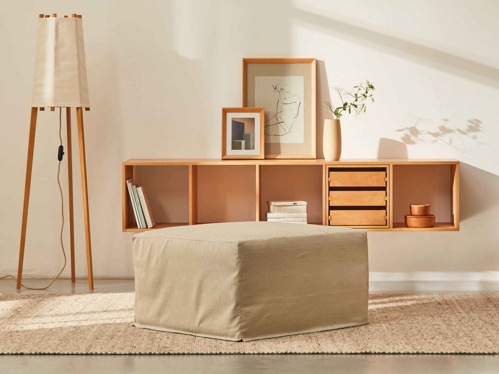 Der Hocker ist zwar ein etwas unkonventionelles Sitz- und Liegemöbel, aber im Gegensatz zu seinen funktionell ähnlichen Vorfahren aus den späten 1960er- und frühen 1970er-Jahren – nicht quietschbunt und aus Polyirgendwas-Schaum, sondern in zurückhaltenden Naturfarben gehalten und Grüne Erde-gemäß zu 100 % aus Naturmaterialien gefertigt.